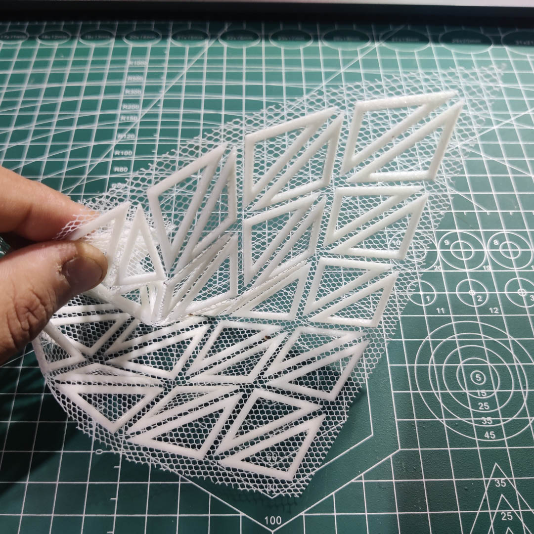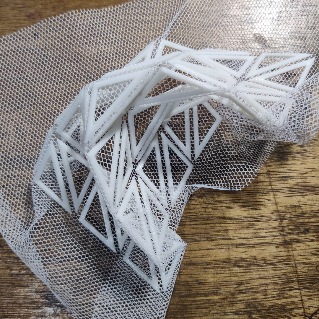 I’m also interested in how 3D printing on fabric can play and explore structure, or how the 3D print’s rigidity can give rise to very specific structures.