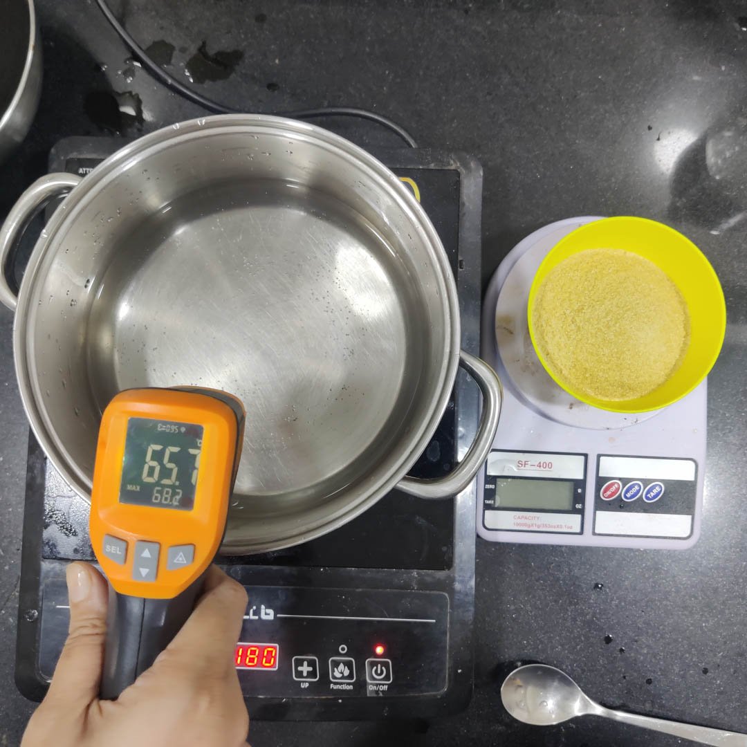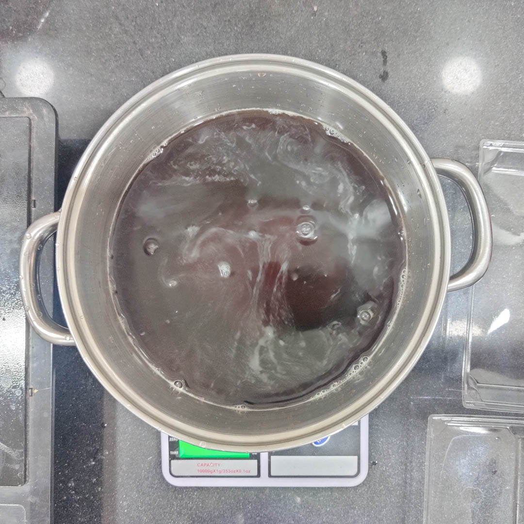 I calculated the number of samples and variants I was going to create and decided 800 ml of starting mixture would suffice. It reduced to about 600 ml before pour, and I was left with some excess as well. Therefore, for the later recipes, I have aimed at 500-600 ml starting mix.