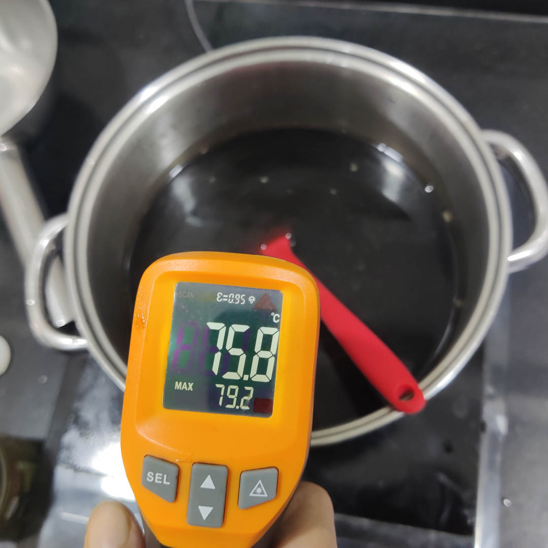 - Add glycerine first, then sprinkle in gelatine while stirring.