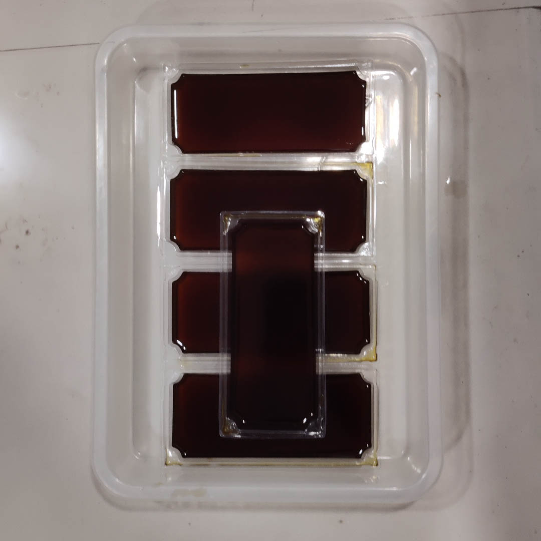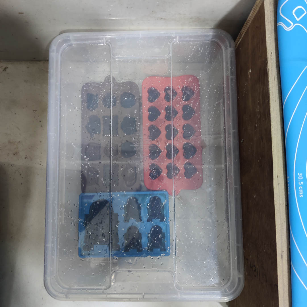- everything had MOLD growing !!! I suspect that, since I put all the trays under clingwrap to avoid dust and particles falling in to the setting gels, air circulation was cut off. The resin did not dry at the expected rate, and the warmth and moisture provided a ripe environment for mold to grow