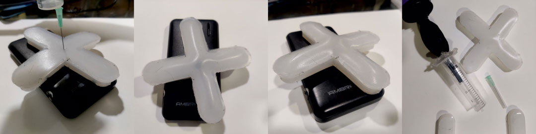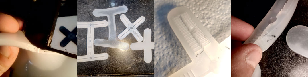 While I wanted to test the idea on Vinyl before I moved to ecoplex and casting, I decided to go ahead anyway. I modelled the mold based on the gripper's features, making the fins slightly larger.