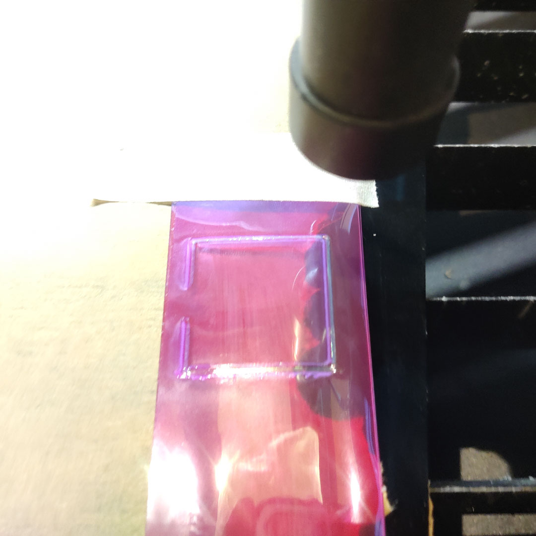 Since vinyl wasn't working, and I had a TPU sheet that Anastasia gave me during Fab25, I decided to try laser welding the sheet. This was a successful operation, the weld was good, the defocussed beam worked exactly as predicted, and the cutting was fine as well. However, the sheet was so thick that inflation wasn't easy and the stiffness proved resistant. I created a smaple to test the technique but abandoned the process since it would not work as well as vinyl.