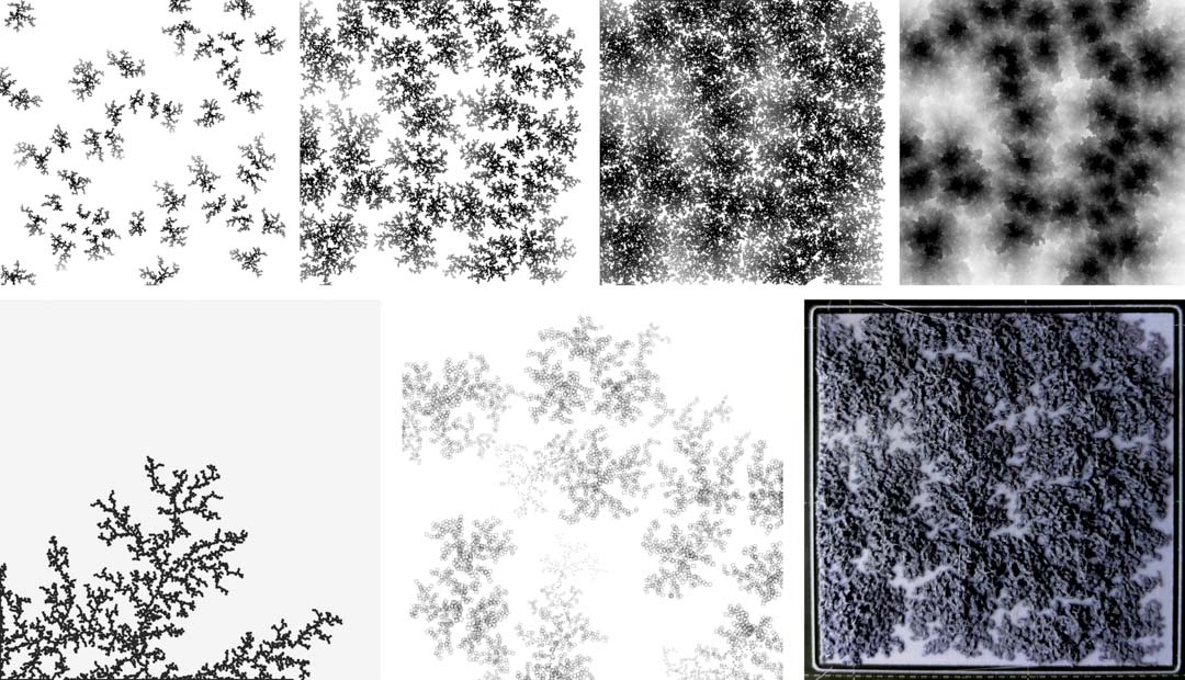 The primary algorithms used are Diffusion Limited Aggregation and simplified Crack Propagation.