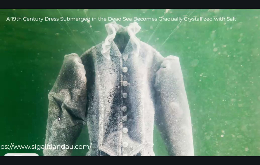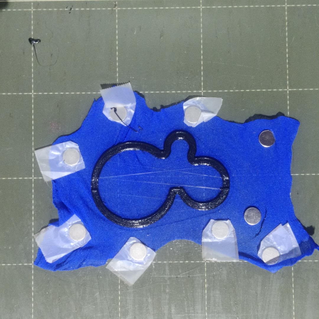 - Image 5 : I 3d printed a frame on a fabric, and used machine screws positioned at the centre of the circles to push the stretchable material into conical surfaces for the crystals to deposit on