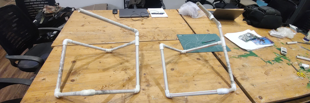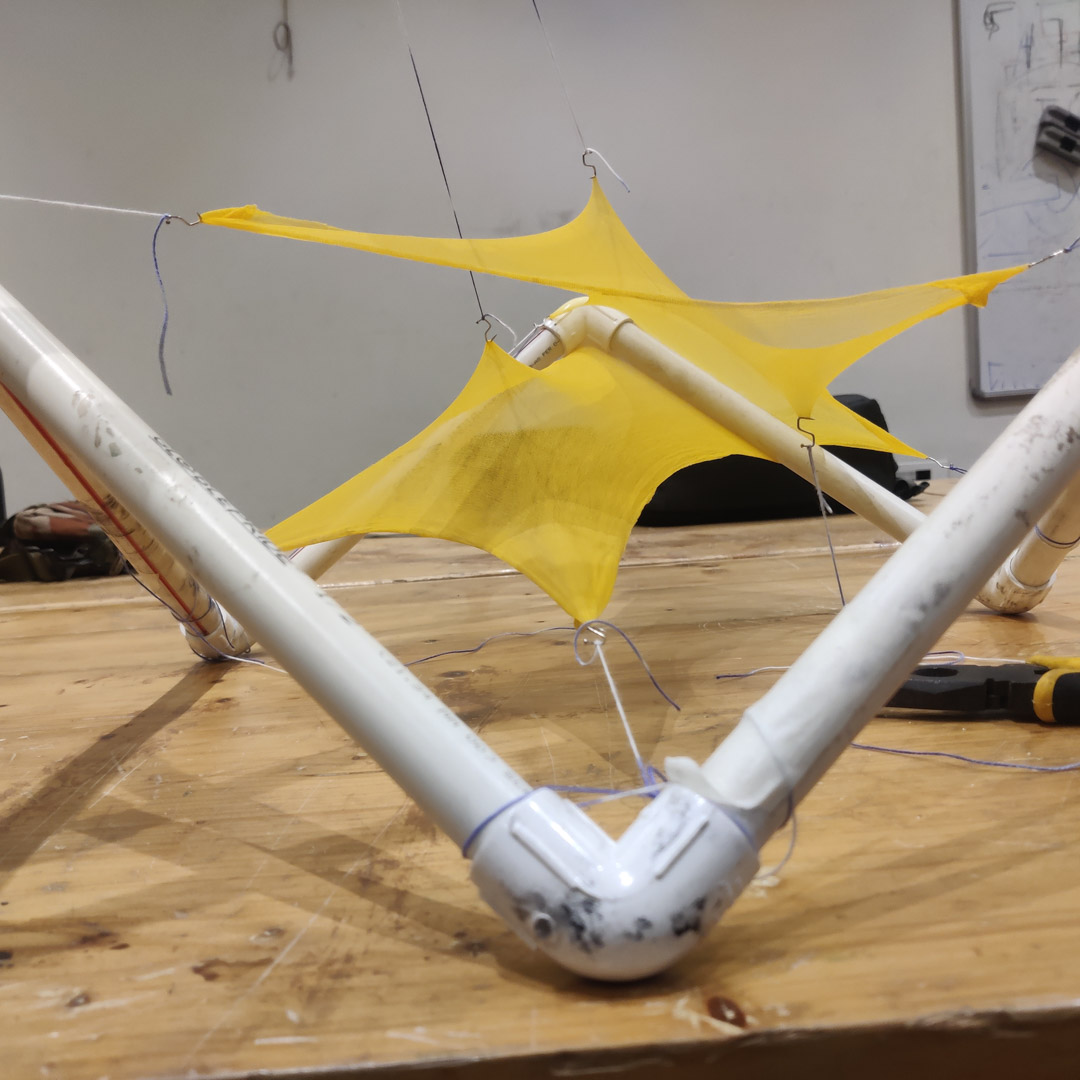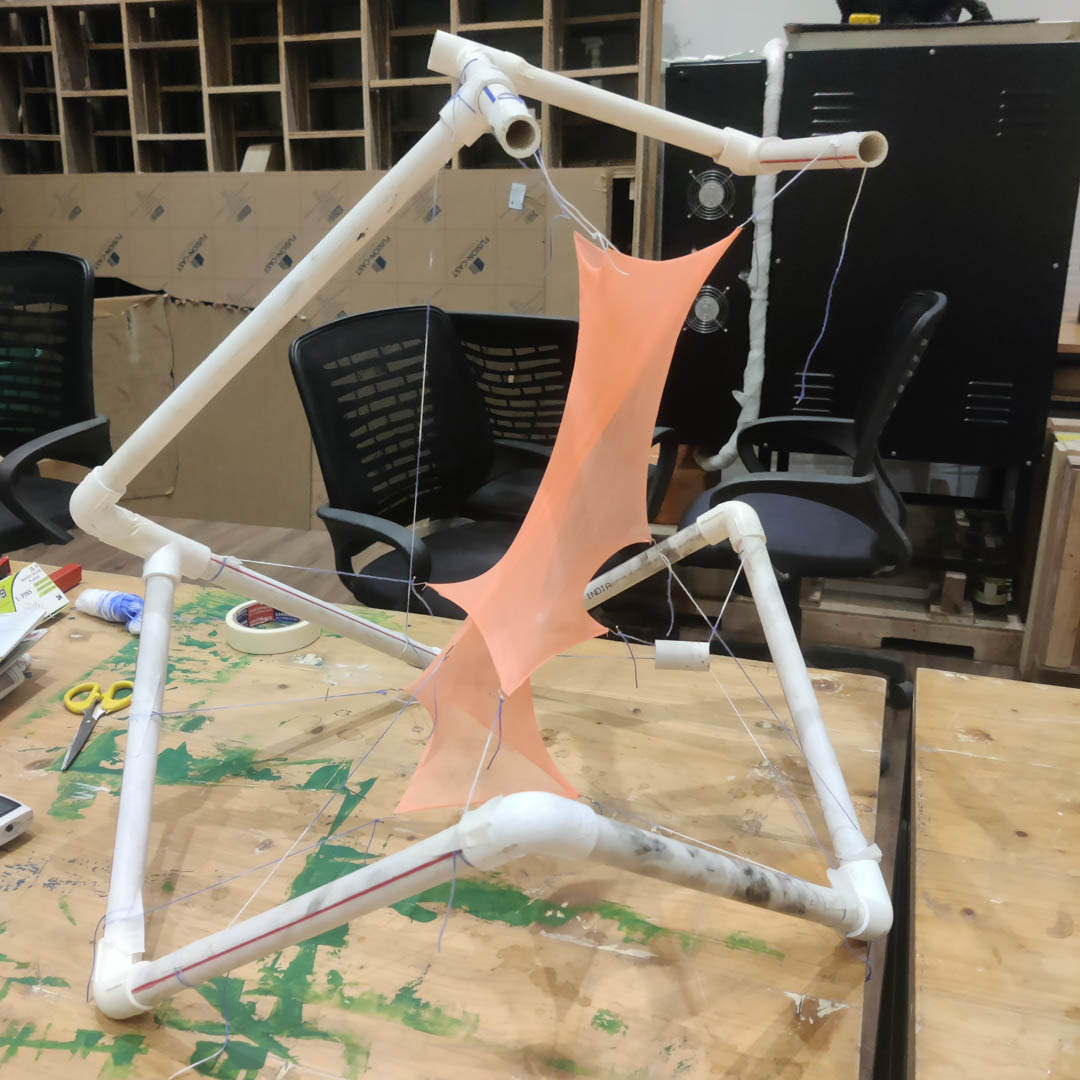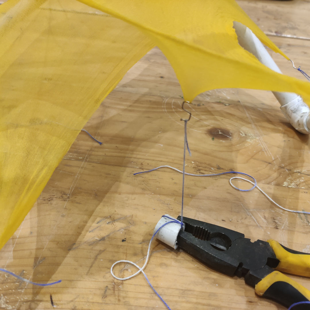 I conduct a class exercise for my students where we use pipe frames and stocking fabric to create tensile forms by pulling at the fabric using hooks and threads.