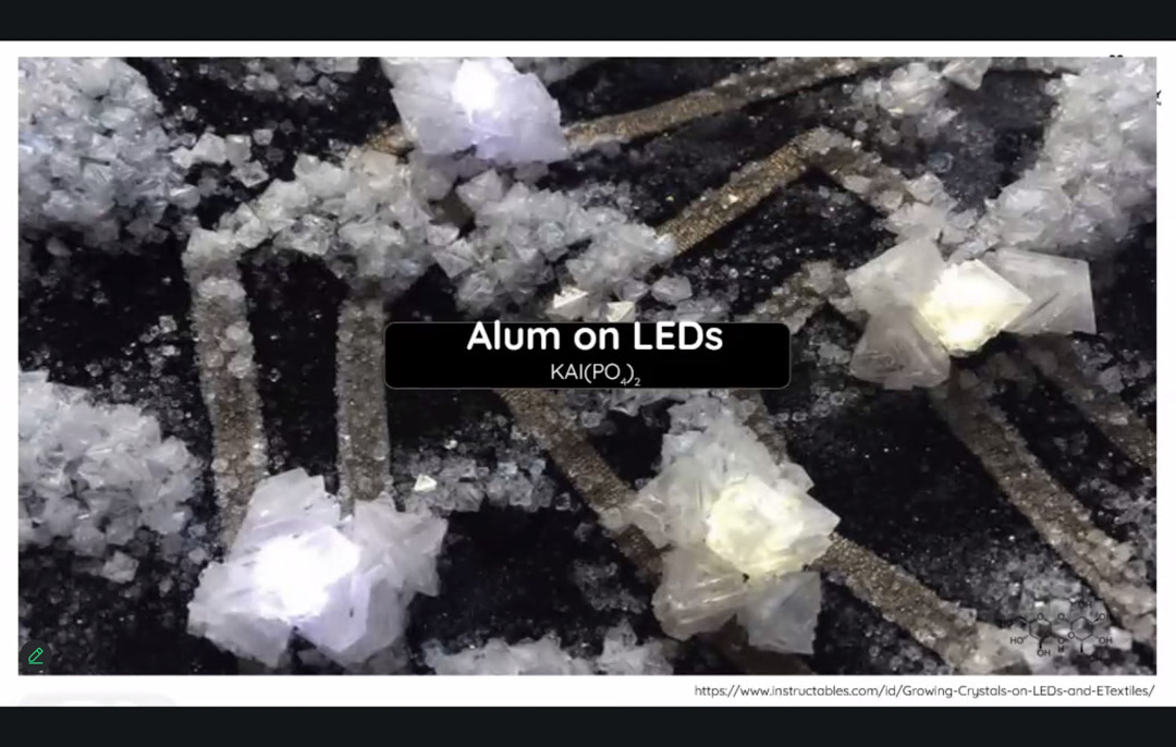 I definitely want to try crystallization on LEDs. Alongwith that though, I want to try crystallisation on threads, knots made of cord, crocheted objects, and fabric or mesh surfaces, both flat or 3D.