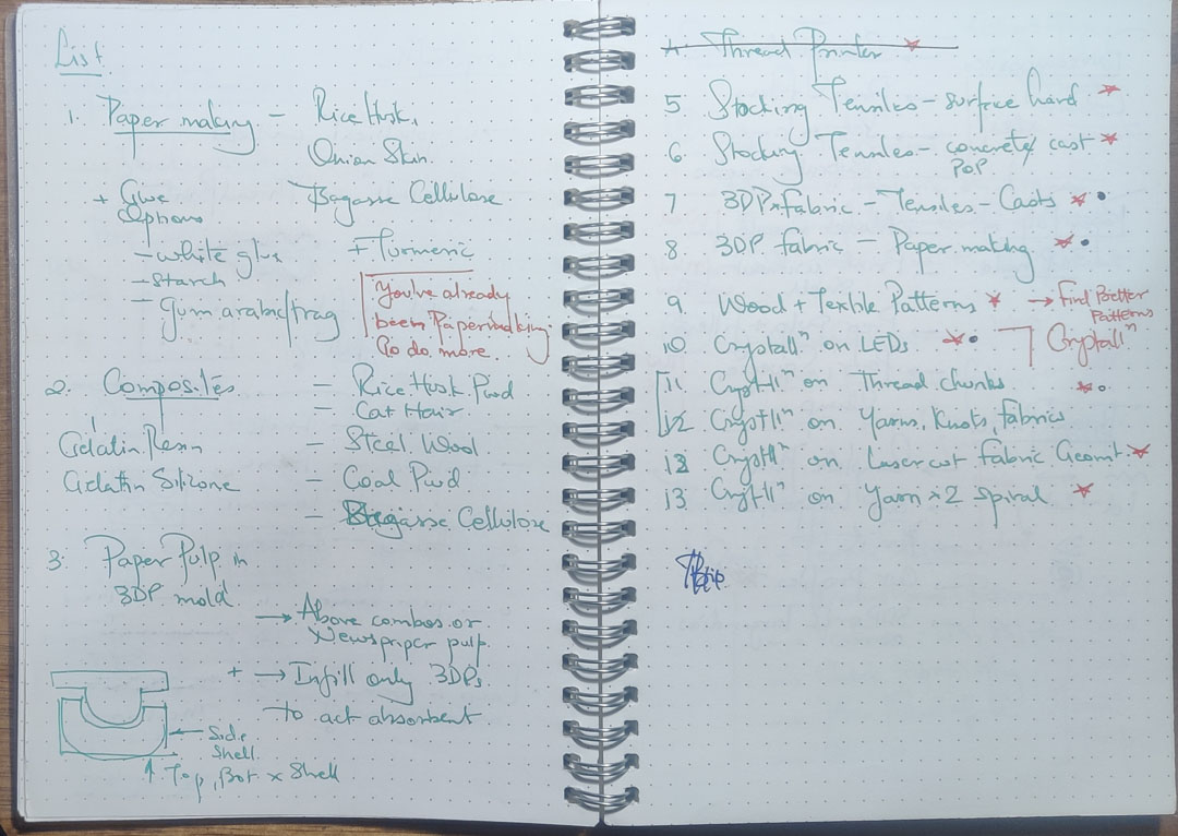 - Rice Husk | Onion skin | Bagasse cellulose | Turmeric pulp as fibres - I have these materials on hand from BioChrome leftovers, or other access