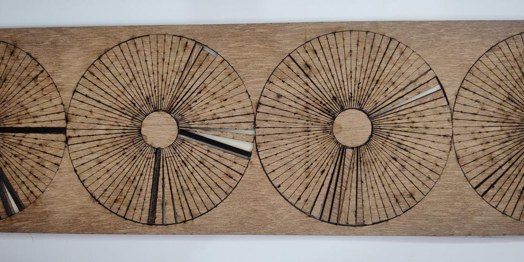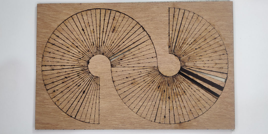 - The ply was a bit warped so it would not lay flat on the bed. So we added an offset frame around each outer square/circle.