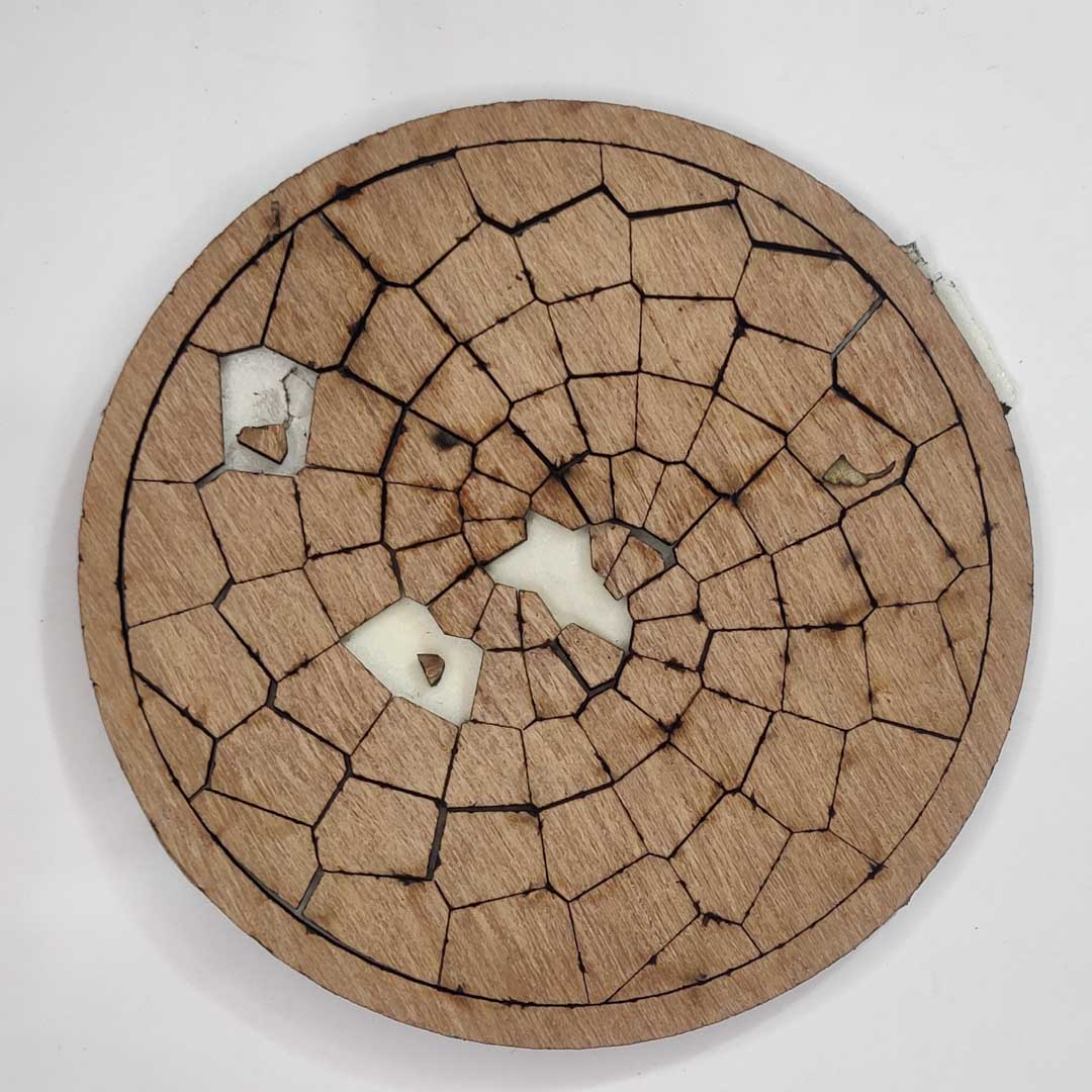 Wherever there were converging lines, those lines/areas were trimmed off to prevent burning from repeated laser exposure.