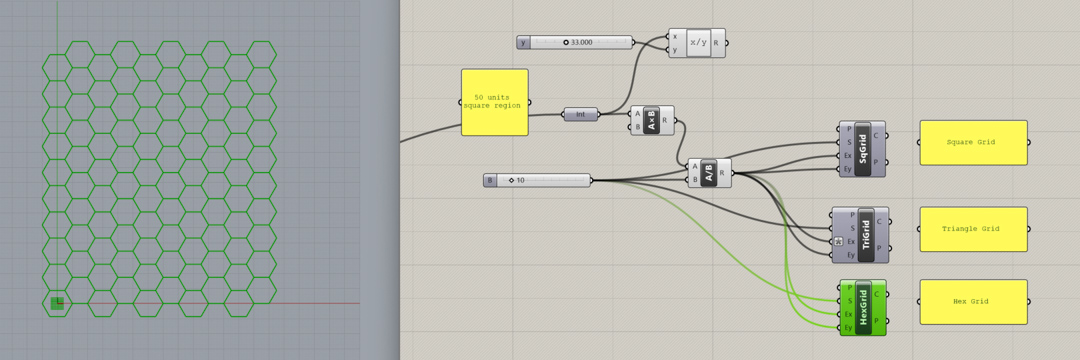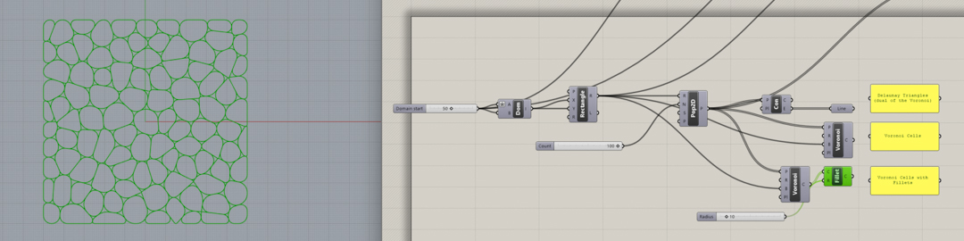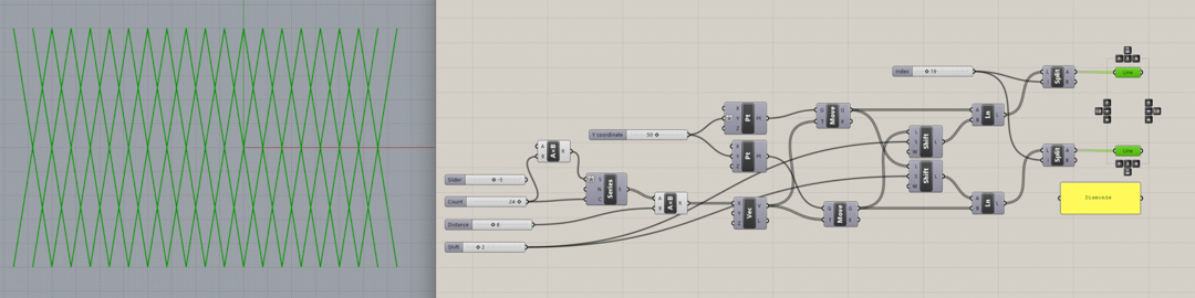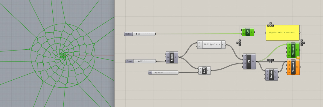 The conical waves were created using a variant of the Linear/Diamond pattern GH script and replicated in vector software.
