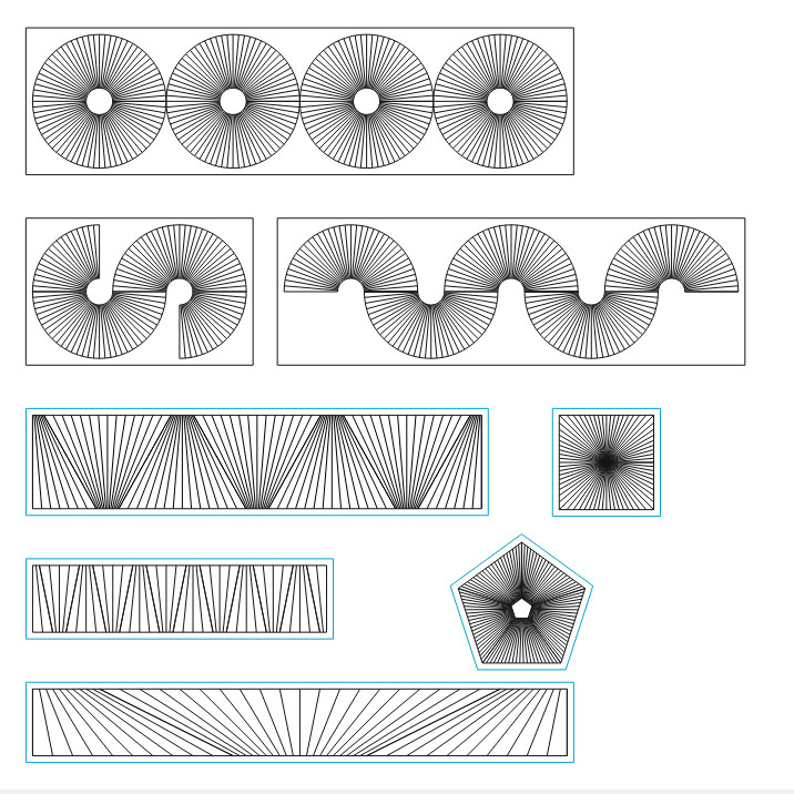 I first started by manually doing some vector drawings, but quickly decided that it would be far easier and faster to setup Grasshopper scripts and generate variations using that.
