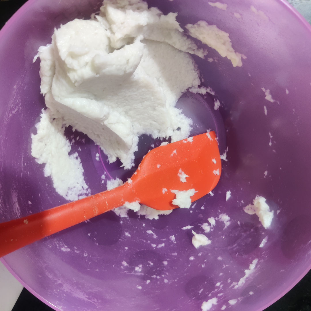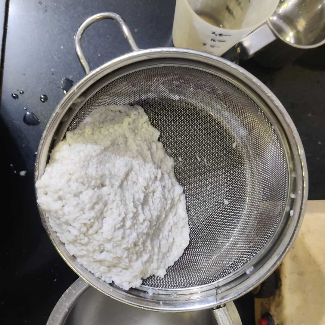using a home mixie to blend as far as possible The material still clumps, and in the vessel it feels a little like cottage cheese with some water drained
