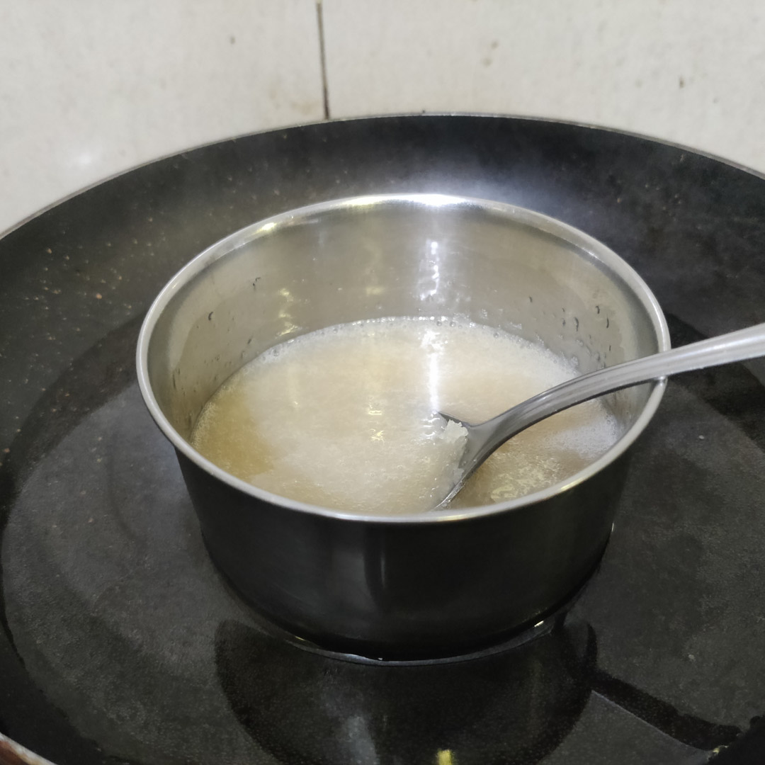 - do use the 1:5 ratio to weigh the gelatin later, i.e if the recipe calls for 2 gms dry gelatin you need 10 gms bloomed gelatin from your preparation