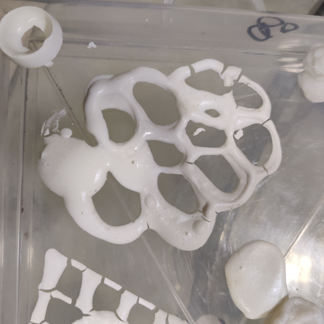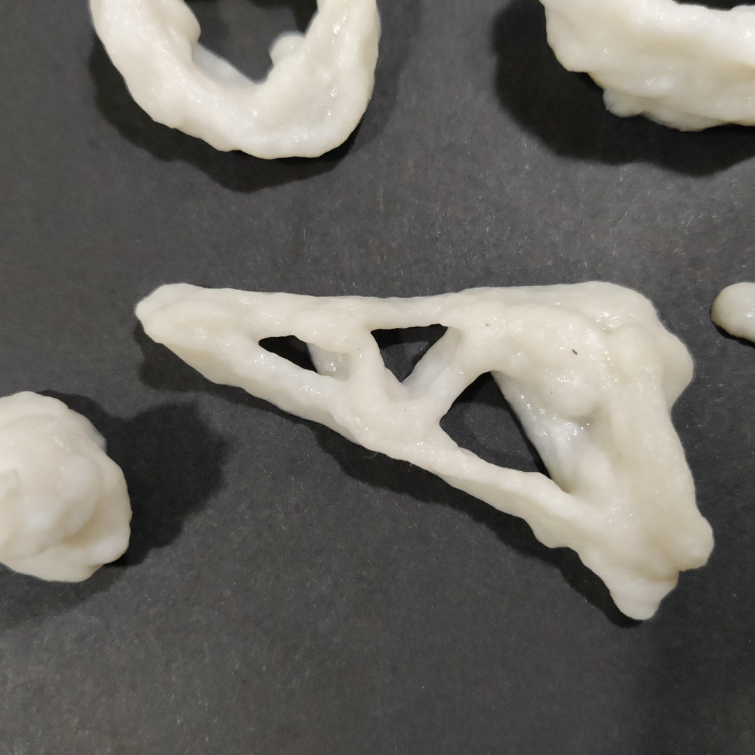 - A while later, a lot of the thin sections had broken up, I am guessing the shrinkage was pulling them together but the surface friction of the base material on which they were extruded did not allow the shrinkage, so the strands fragmented.