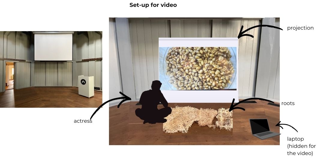 Visuals of my recordings of growing roots projected onto the background wall.