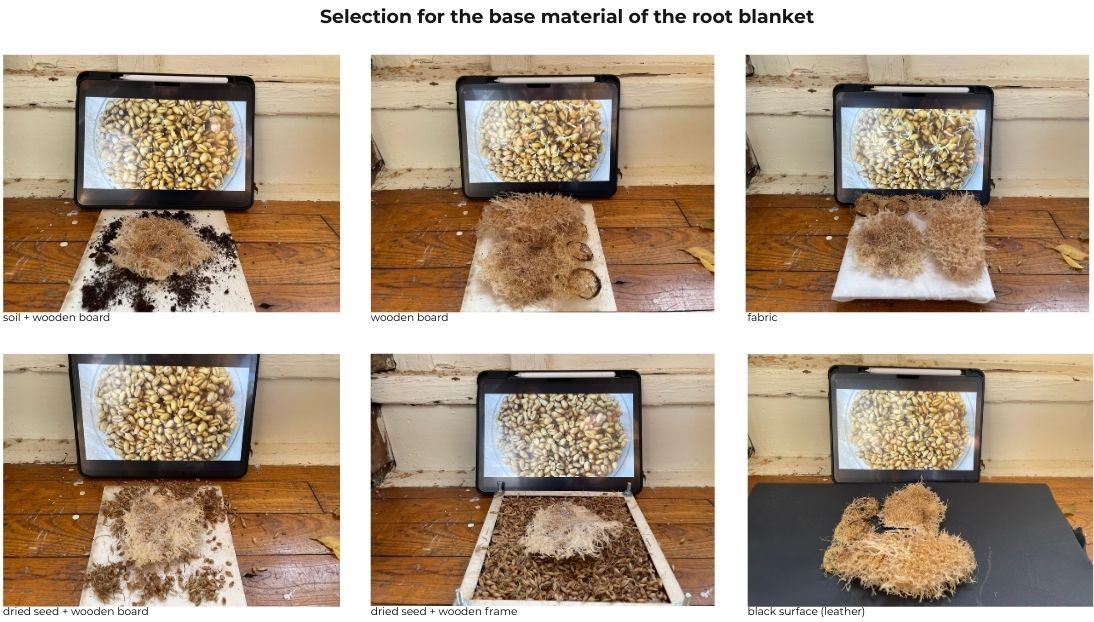 Root blanket lying on a beige/off-white fabric for a soft, earthy look or a darker surface for higher contrast