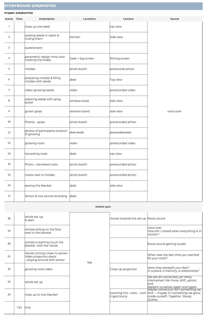 Cables & tech: All cables must be physically connected to my laptop as TouchDesigner has to run for the sensor signals → all technique hidden underneath the table (exibithion)/ behind something for video