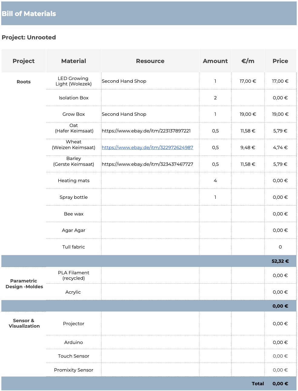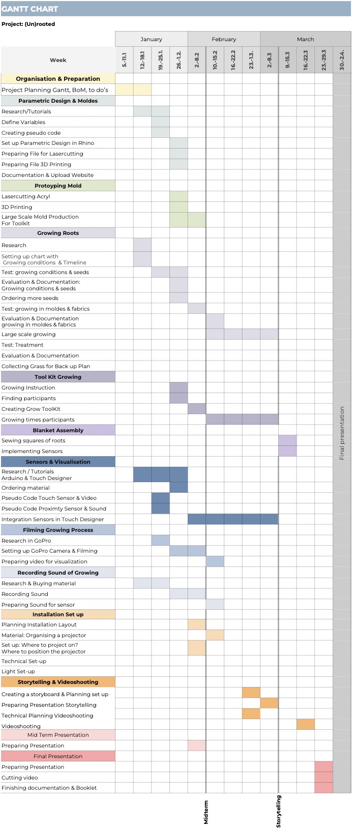 Deliverables¶ GANTT CHART¶ BILLS OF MATERIALS¶ Support needed:¶ Grasshopper: Set up of parametric design Maybe: Implementation of Sensor & Visualization