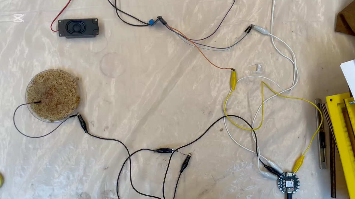 I measured the electrochemical signals and experimented with amplifying them into sound. While this worked, the result resembled an unpleasant, computer game–like noise rather than something atmospheric or pleasing. Despite my efforts, I wasn’t able to achieve a more refined sound. Based on my research, it seems that the current hardware setup limits the quality of the output, and a different type of speaker would likely be needed to produce more appealing results