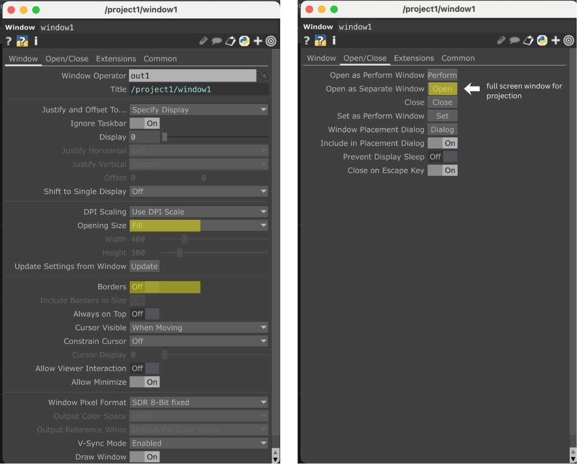 - window1: Output for full screen projection