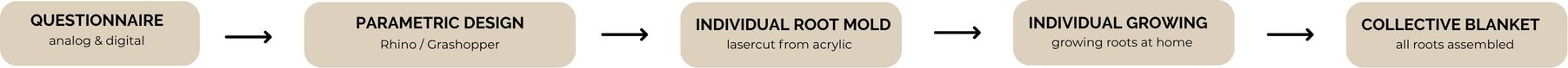 I developed a questionnaire that explores a person’s feelings of belonging, identity, and relationships. The responses are translated into parameters that shape the design of a personalized mold for growing roots. The questionnaire was shared with people in my surroundings who wished to participate in the project and grow roots themselves within their individually generated mold. 10 persons were participating in Amsterdam, Leiden and Hamburg.