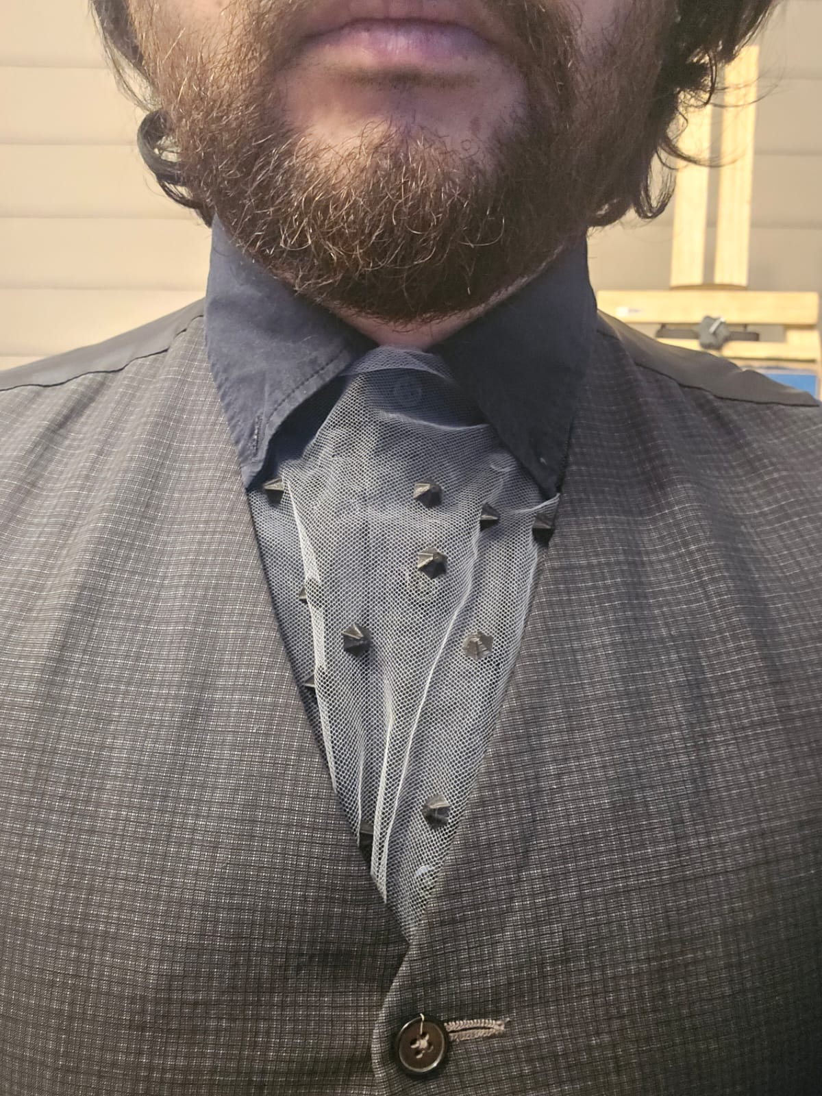 For this week's assignment I wanted to design a chest piece that could replace a tie, and still look good and elegant when wore with a suit. I wanted to make it look as tiny studs floating in the chest, with differences in density as they get further away from the neck. The design was very straightforward, as the shape is a basic irregular pentagon, the measurements are pretty close to those of a tie, except that I wanted it to be wider. It is supposed to be tied the same way as a tie, so it should be connected to a "tail". The difficulties came with the question: How am I going to populate the area with little studs? For starters it should be parametric, so both the cloth and the shape of the studs can vary depending on what one might want. Also the density and amount of objects should be easily changed. Apparently the answer was Grasshopper.