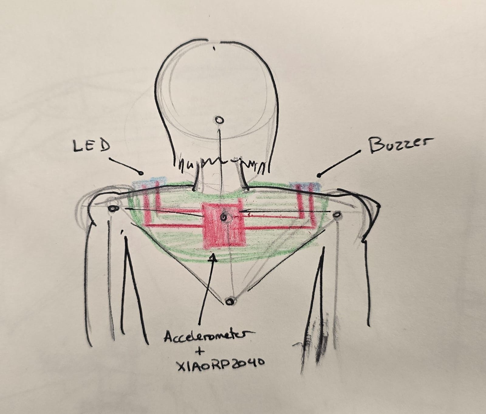 The initial idea is some sort of wearable that either vibrates, plays an annoying sound on a buzzer, and/or turns a bright LED when your back is not in the most optimal position. How will I manage to do that? First things first.
