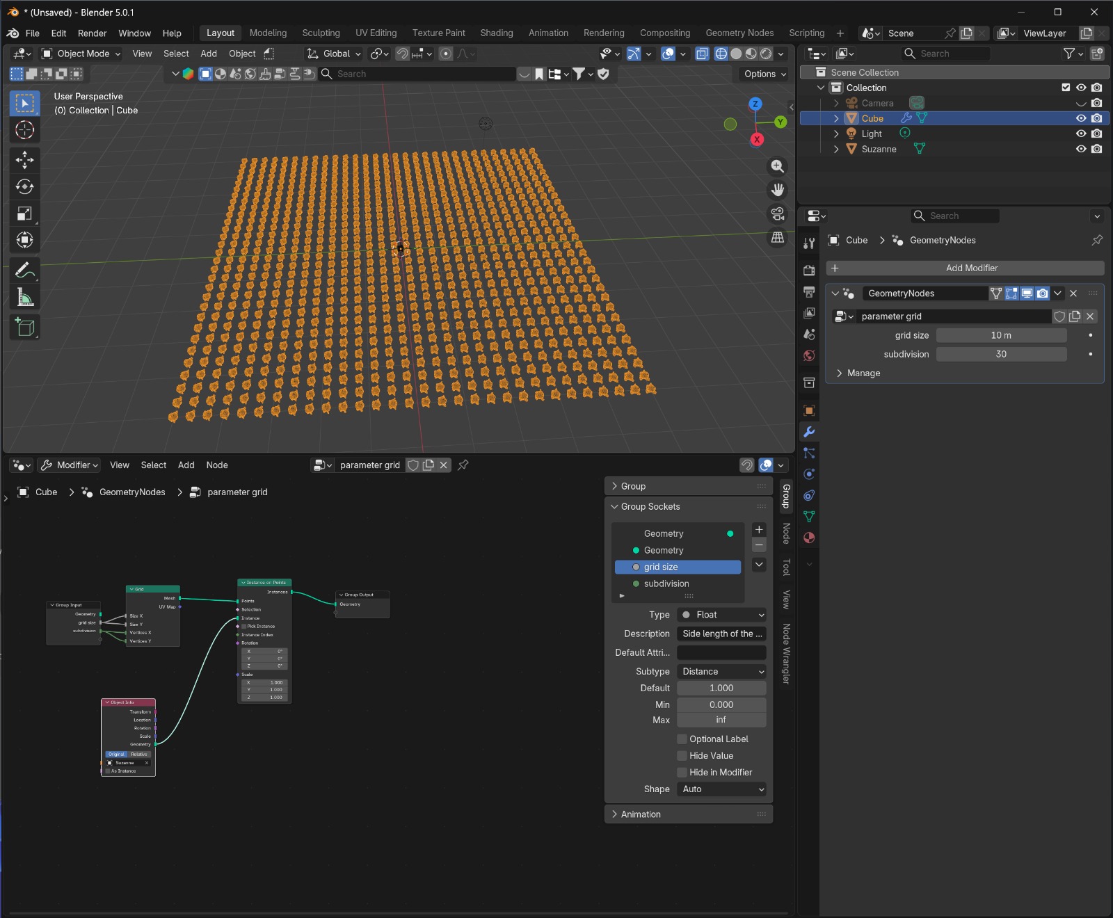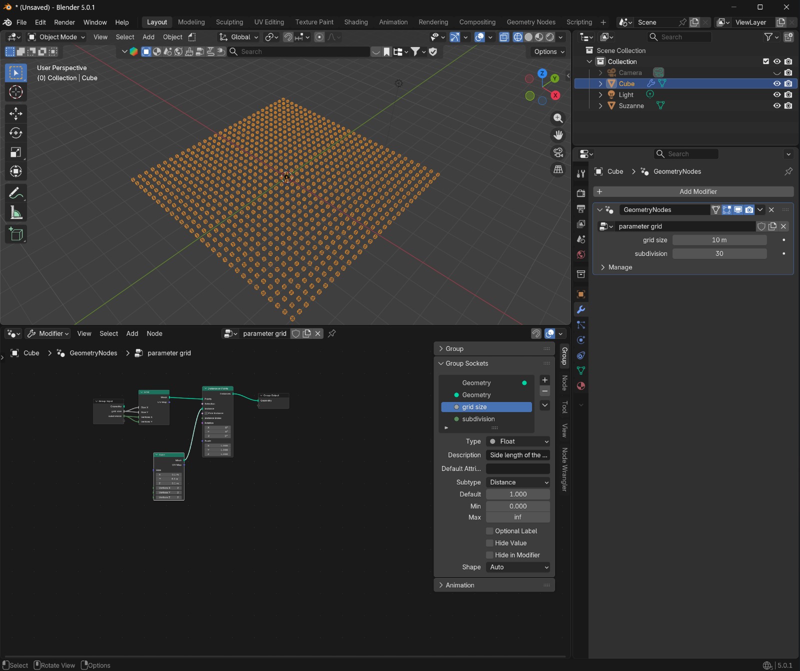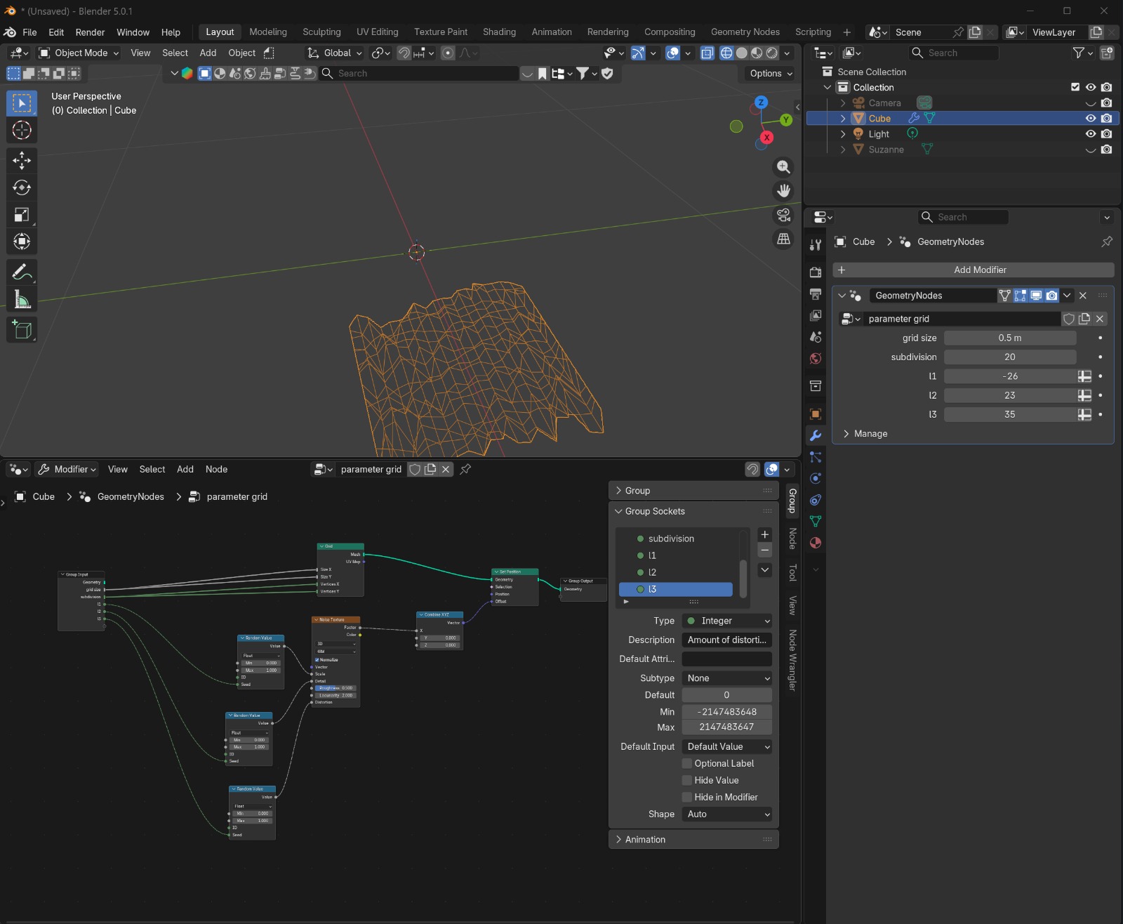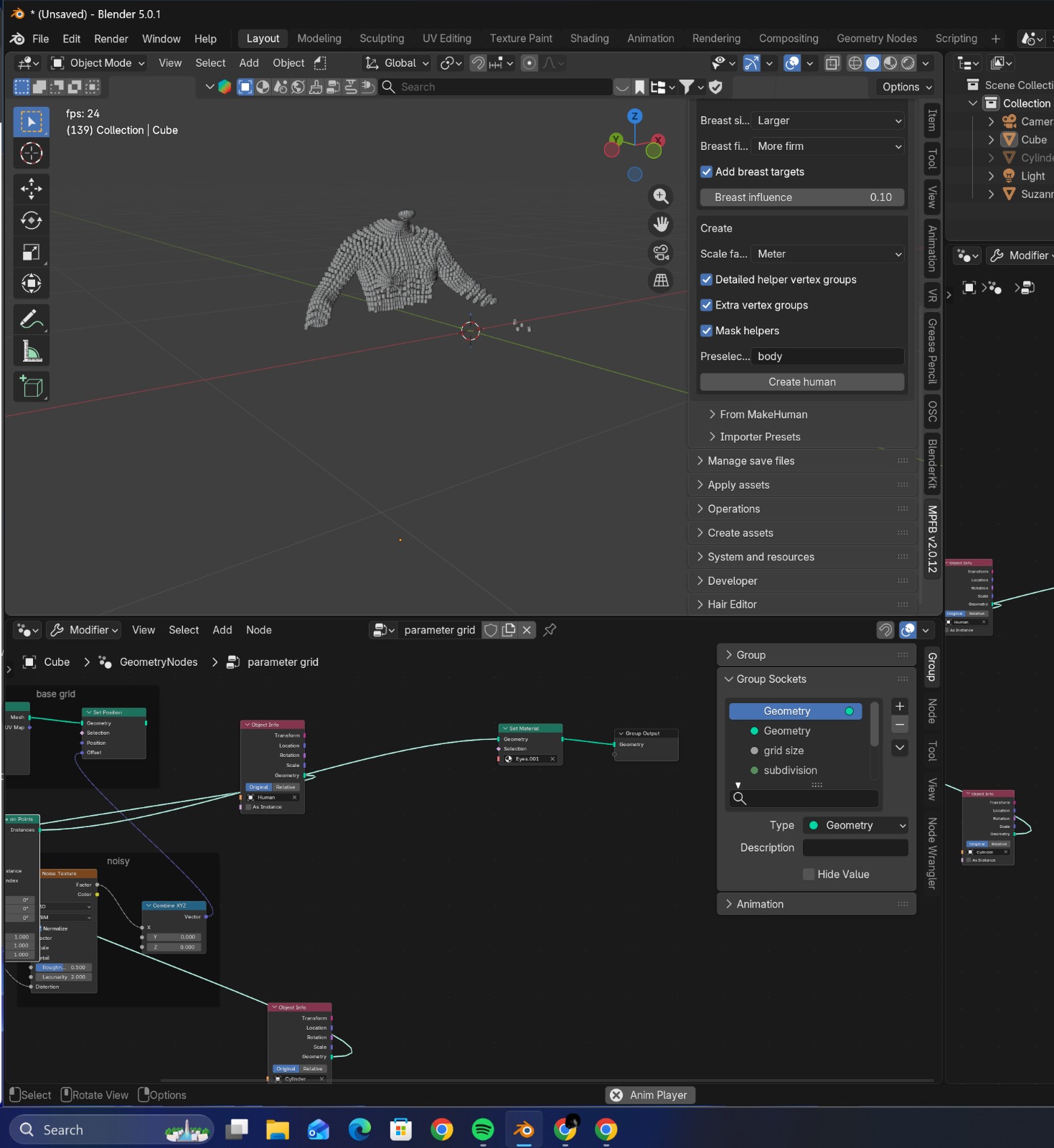 I started by creating the base mesh of the garment in Blender, concentrating on the overall shape and proportions. To enable the addition of procedural details, I subdivided the mesh to increase the geometry density, allowing for more precise adjustments through node-based methods. This process established a solid foundation for developing a flexible and adaptable parametric garment.