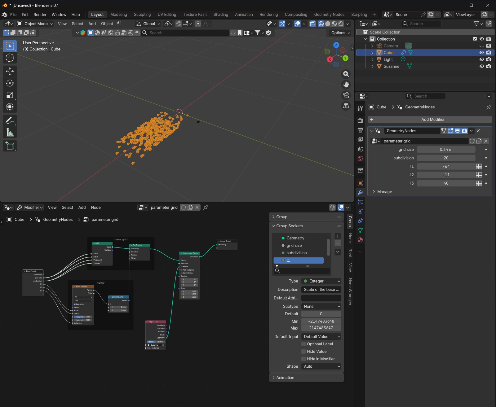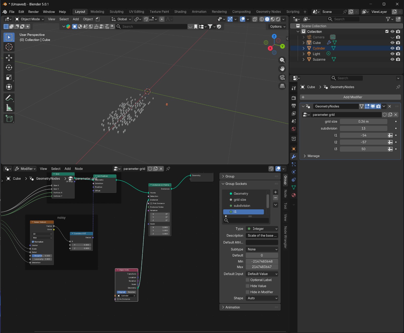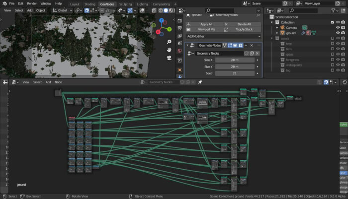 I applied a Geometry Nodes modifier to the mesh to generate patterns, folds, and surface details procedurally. I utilized various nodes to control the form and structure and integrated add-ons such as Pufferfish for advanced transformations and Node Wrangler to optimize and streamline the node workflow efficiently.