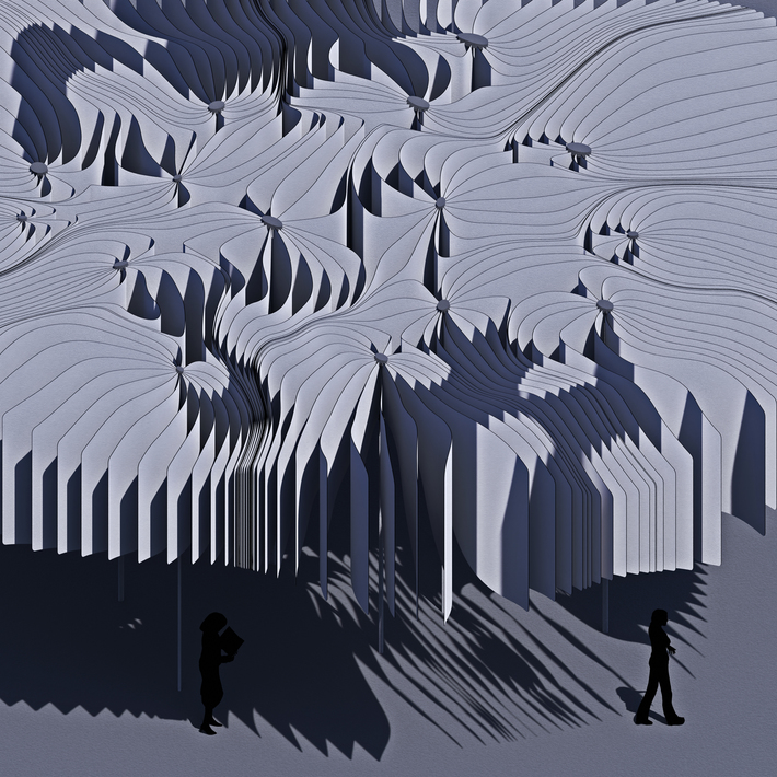 My inspiration for Computational Couture Week stems from the Magnet Shade Pavilion and other parametric designs created with Grasshopper3D, such as Ngon Mesh and Minimal Surface. These projects demonstrate how algorithmic principles can generate intricate forms, motivating me to explore similar computational approaches in adaptive and code-driven textile and fashion design.