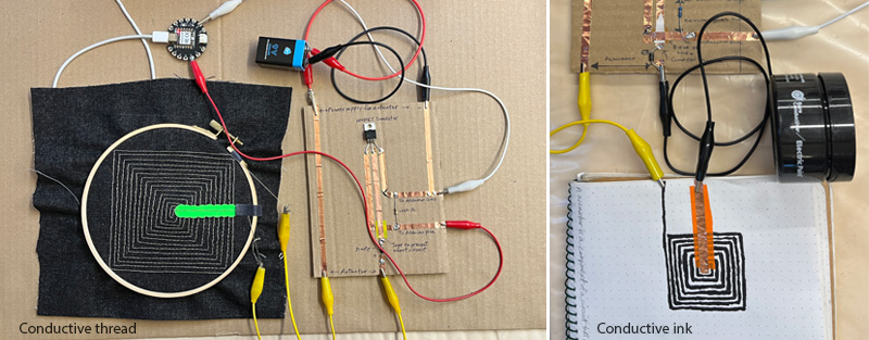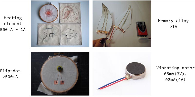 - Create 2 actuator swatches and test them, choosing from examples such as: Motors or mini vibration, flip dot/electromagnet, heat pad with thermochromic coating, fabric speaker or mp3 player, SMA (shape memory alloy), LEDs or neopixels.