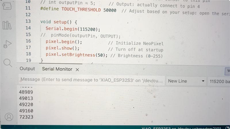 I decided to recycle the speaker coil experiment and use it as a touch sensor. The code is below. After hooking it all up, it didn't work. Why? Troubleshooting:
