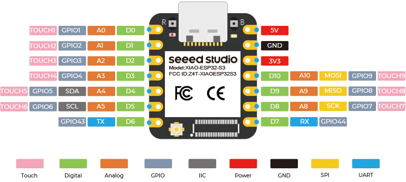 Here's a handy pin guide for the XIAO-ESP32-S3 that I found essential for following along on all the various tutorials: