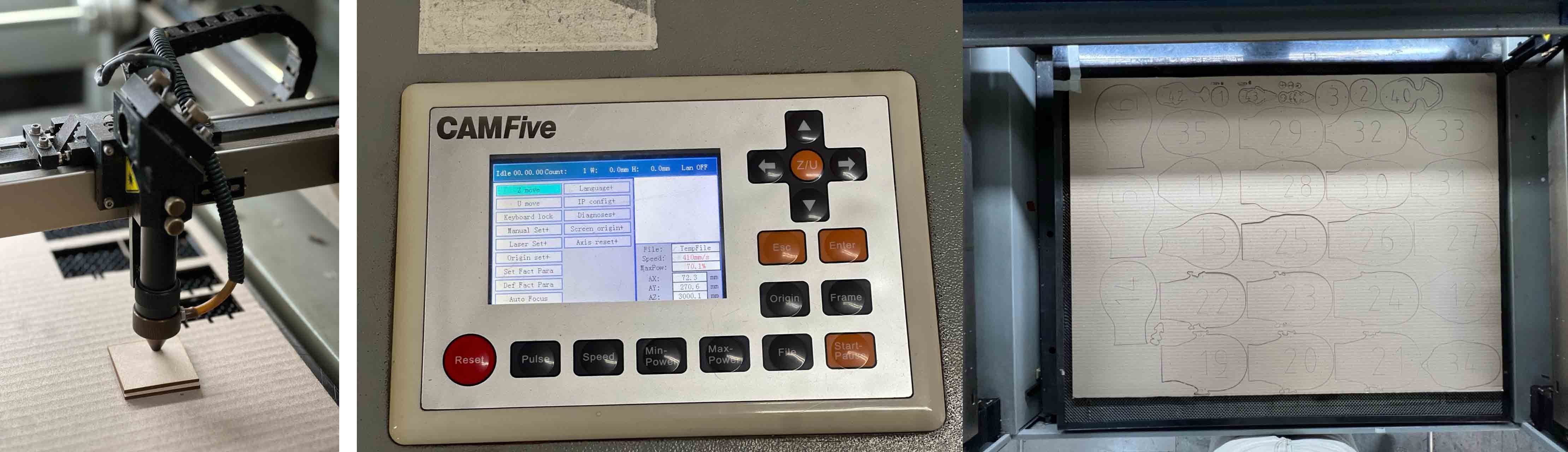 Used Slicer software to define slicing technique & structure. Focused the laser head, placed the material, checked the height & activated the exhaust fan. Set parameters (e.g. power, speed) according to the material type & thickness.