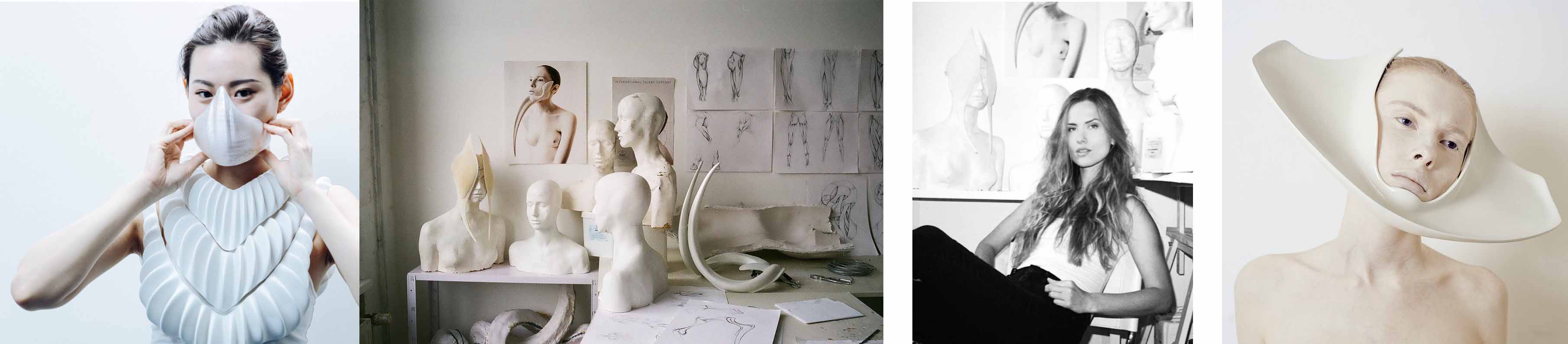 Ana Rajcevic is a Serbian-British artist and designer whose work explores the body’s surface through speculative wearables, sculptural forms, & material experimentation. She merges design, art, & jewelry to create hybrid pieces that challenge definitions of comfort, protection, & adornment. Her work inspires me as she treats the body not just as a canvas, but as a site of transformation — where materials, space, & human form meet.