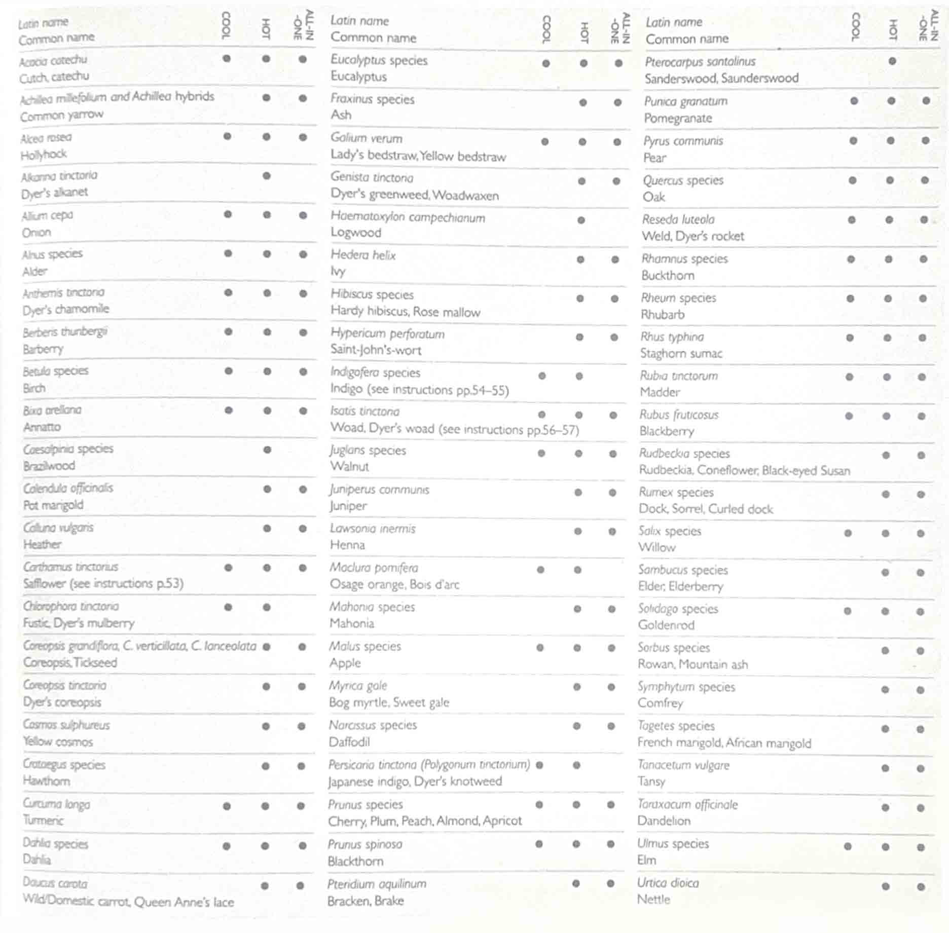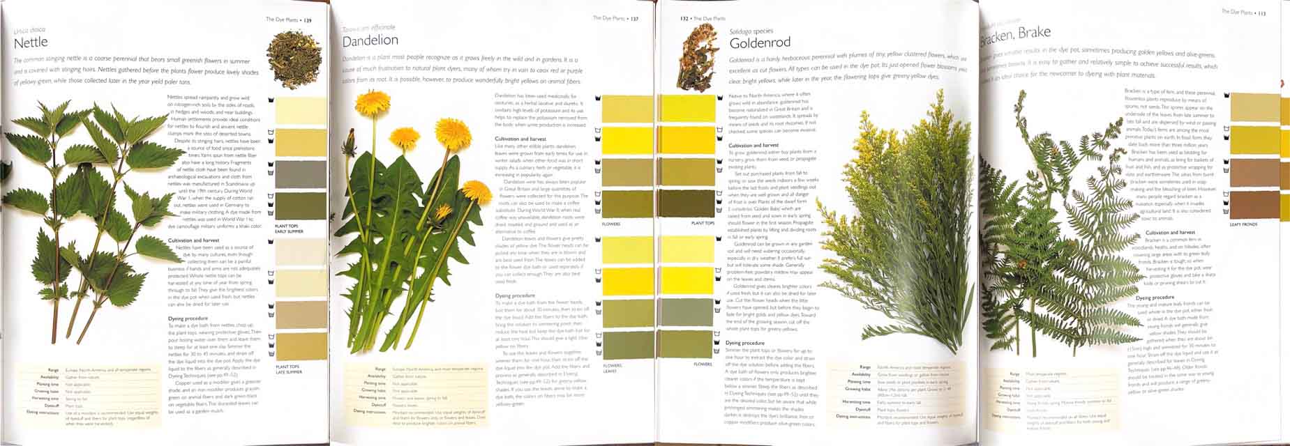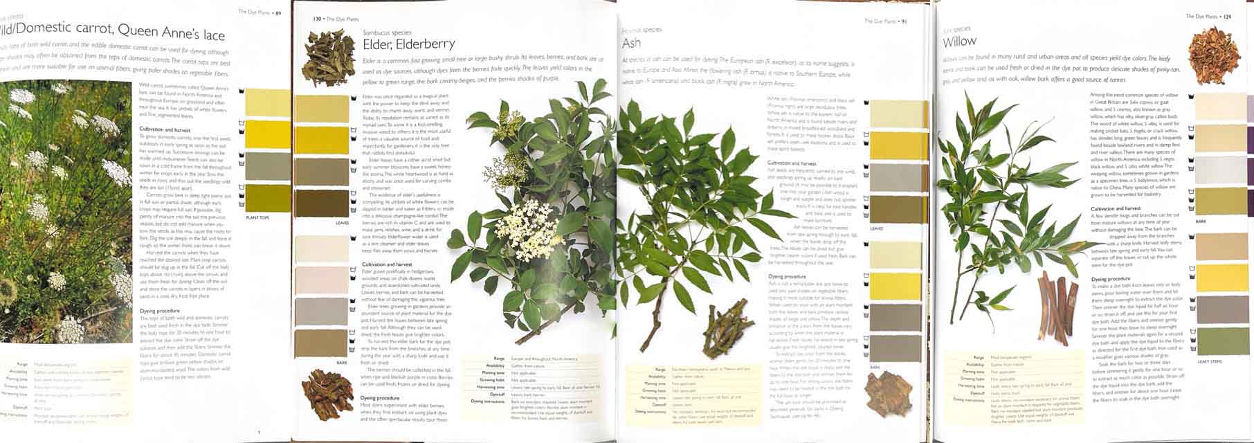 To begin, I browsed through the book Wild Colours by Jenny Dean (which I highly recommend). What I particularly appreciate about this book is its clear structure & the way it allows you to see at a glance where each plant originates in the world & which colours can be obtained—depending on the mordants—from its