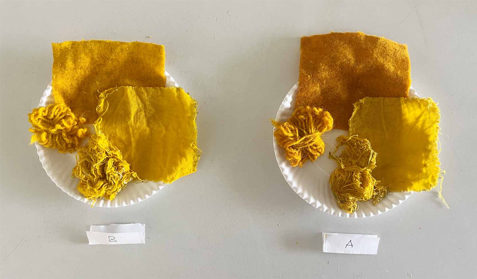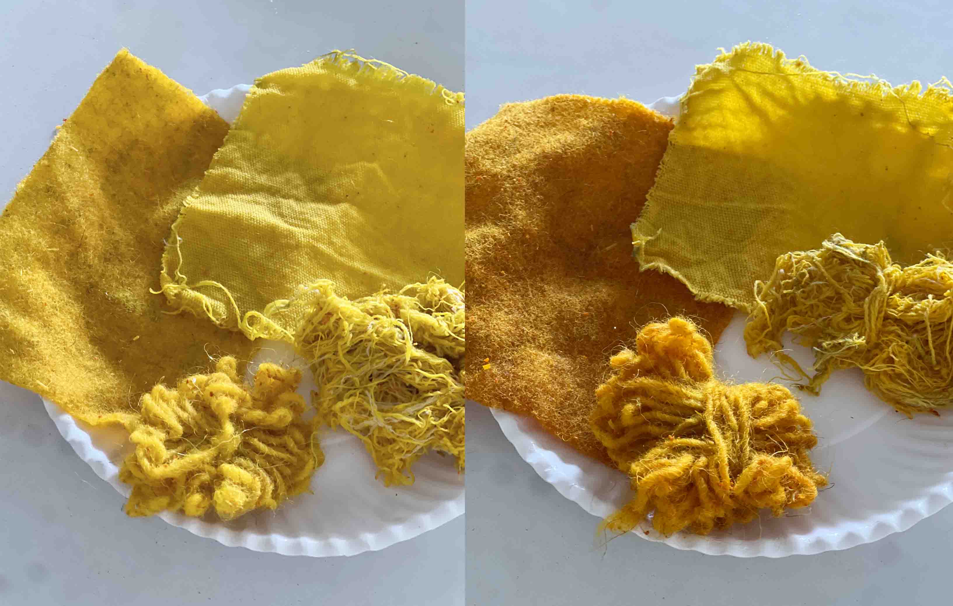 After dyeing: In vinegar bath → tone becomes lighter, clearer, more sun-yellow In baking soda bath → tone turns warmer, golden-orange In iron bath → tone deepens toward olive-yellow