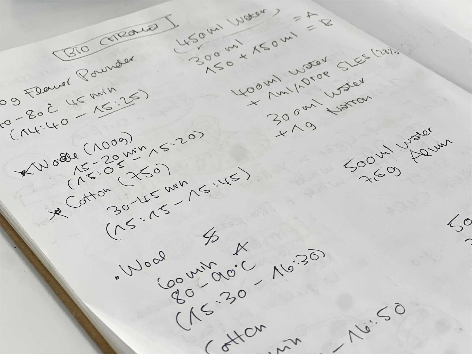 Each sample will be documented in detail, covering: - Ingredients used - Dyeing process - Timing - Environmental conditions
