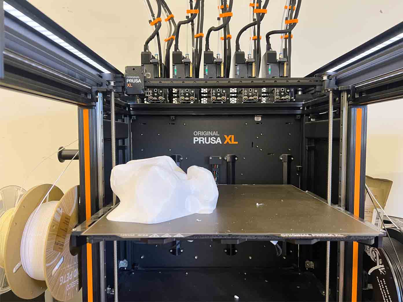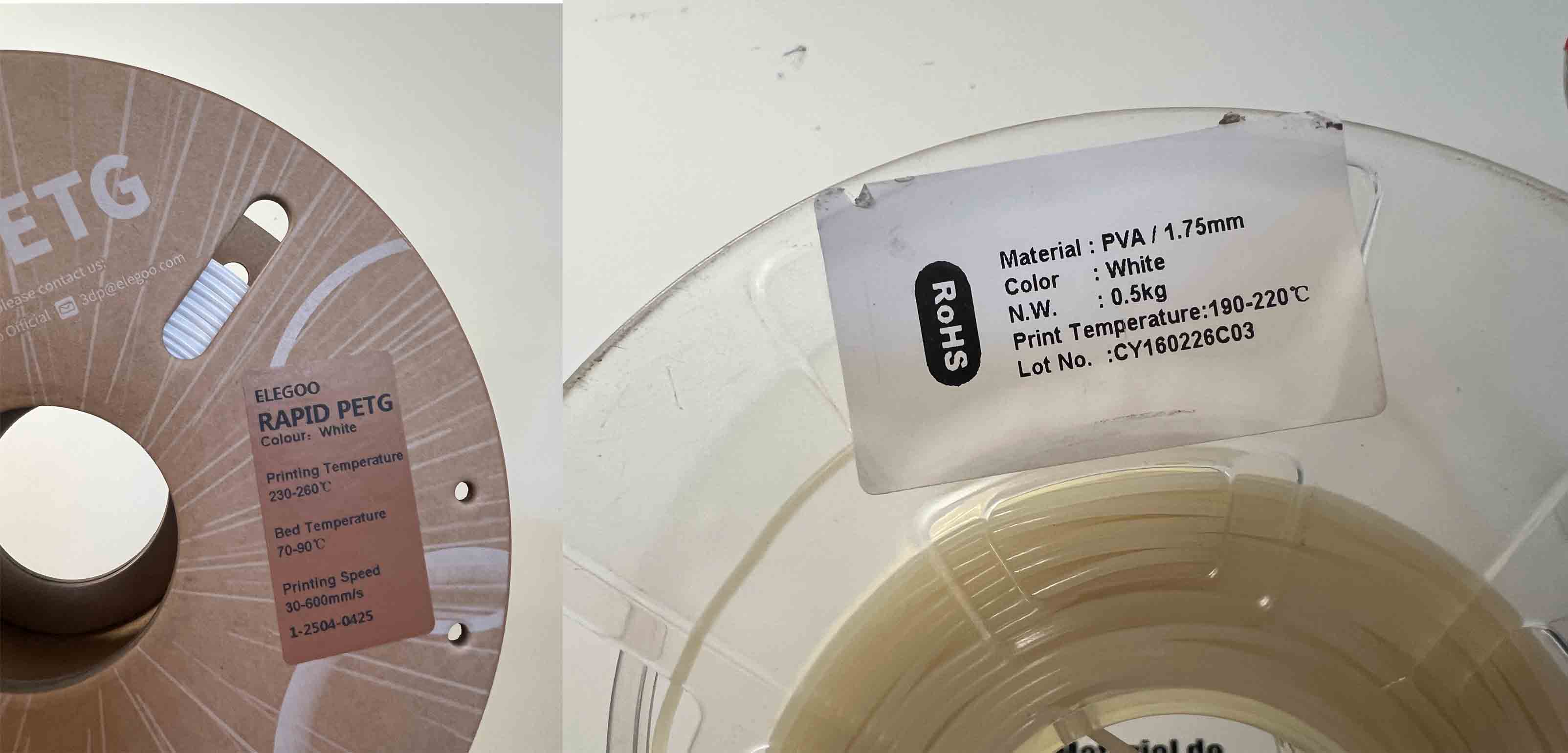For the mold fabrication, I decided to print with 2 filaments simultaneously — PETG for the outer shell of the mold & PVA (polyvinyl alcohol) as a water-soluble infill.