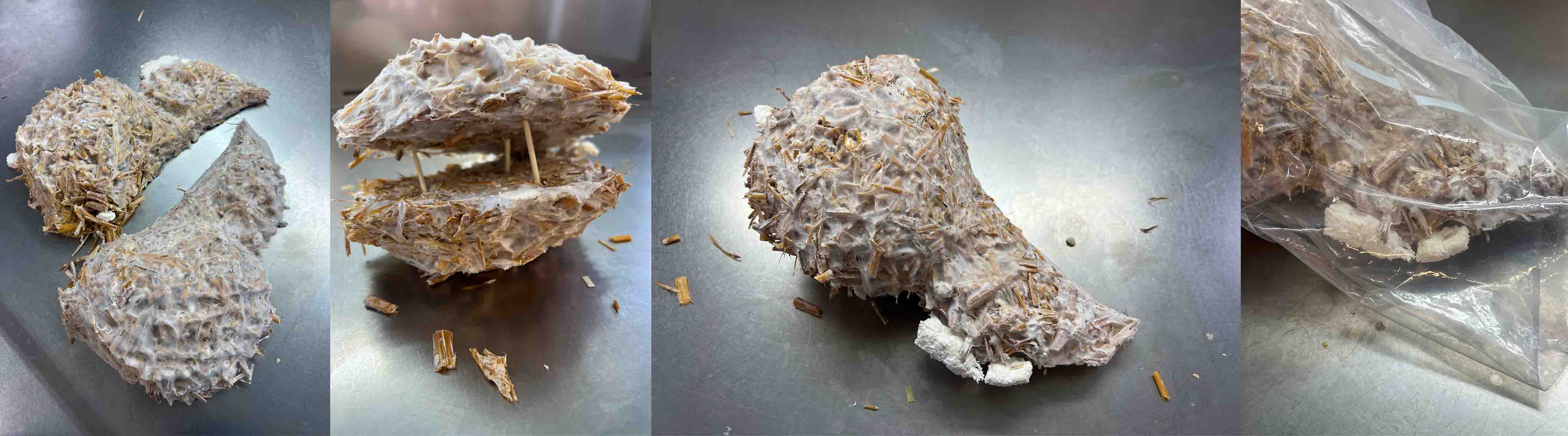 It is commonly used for mycelium cultivation & material experiments because its dense, fibrous network grows quickly, binds well, & can be easily shaped or dried — making it ideal for bio-based materials & design applications.