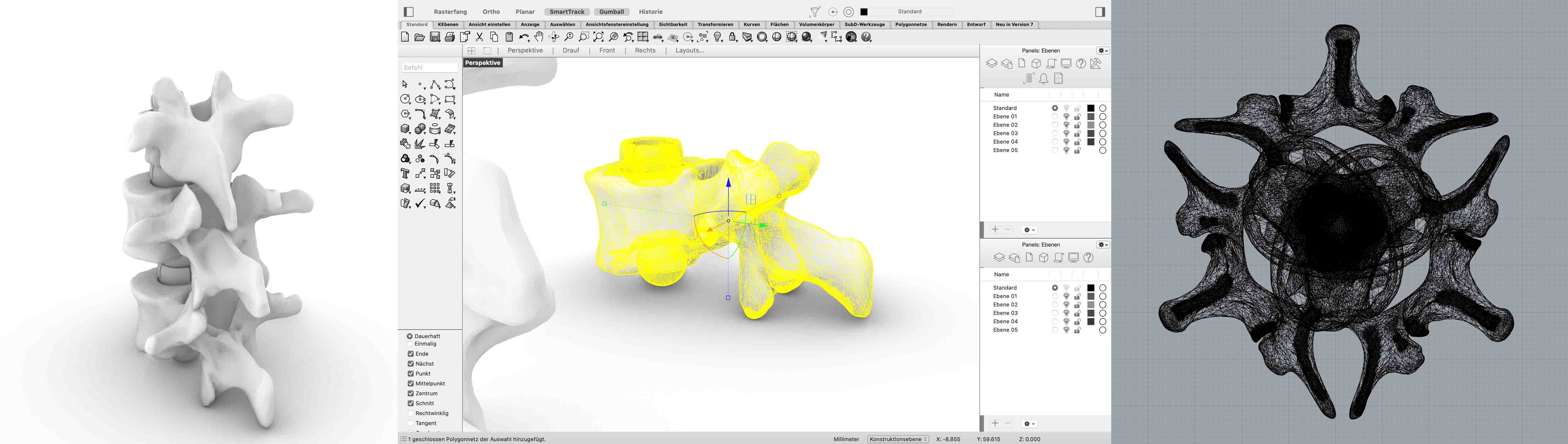 For the form development, I was inspired by organic bone shapes, particularly the structure of a vertebra.