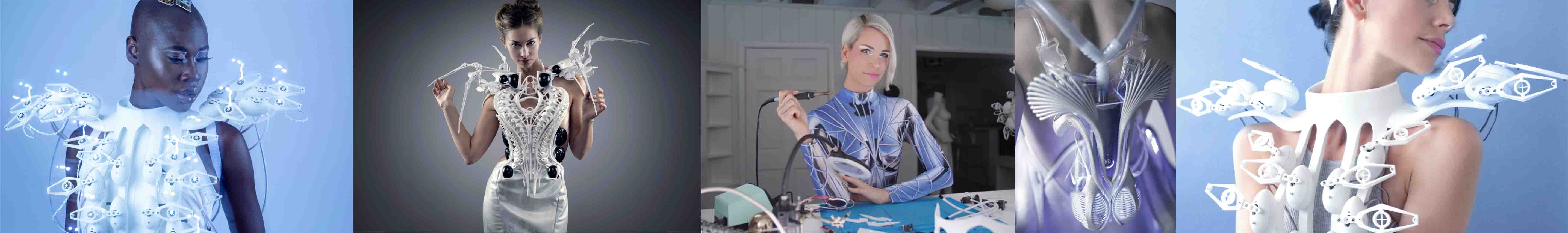 Anouk Wipprecht is a Dutch FashionTech designer who merges fashion with robotics, sensors, & microcontrollers to create interactive “technological couture.” Her pieces move, react, & communicate with the environment, turning clothing into intelligent systems. Her Spider Dress is a key example, using sensors & robotic arms to protect personal space. She collaborates with companies such as Intel, Google, Microsoft, & Audi, & works internationally between the US & Amsterdam.