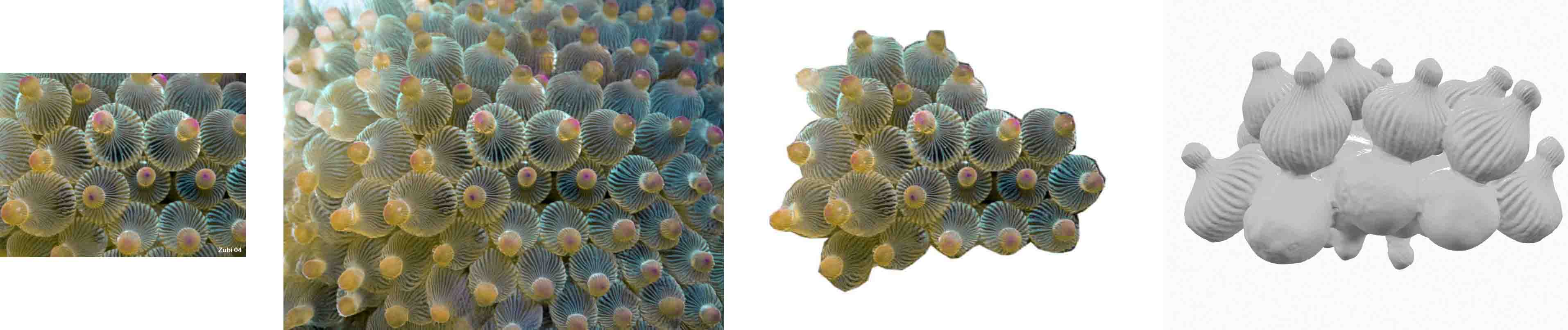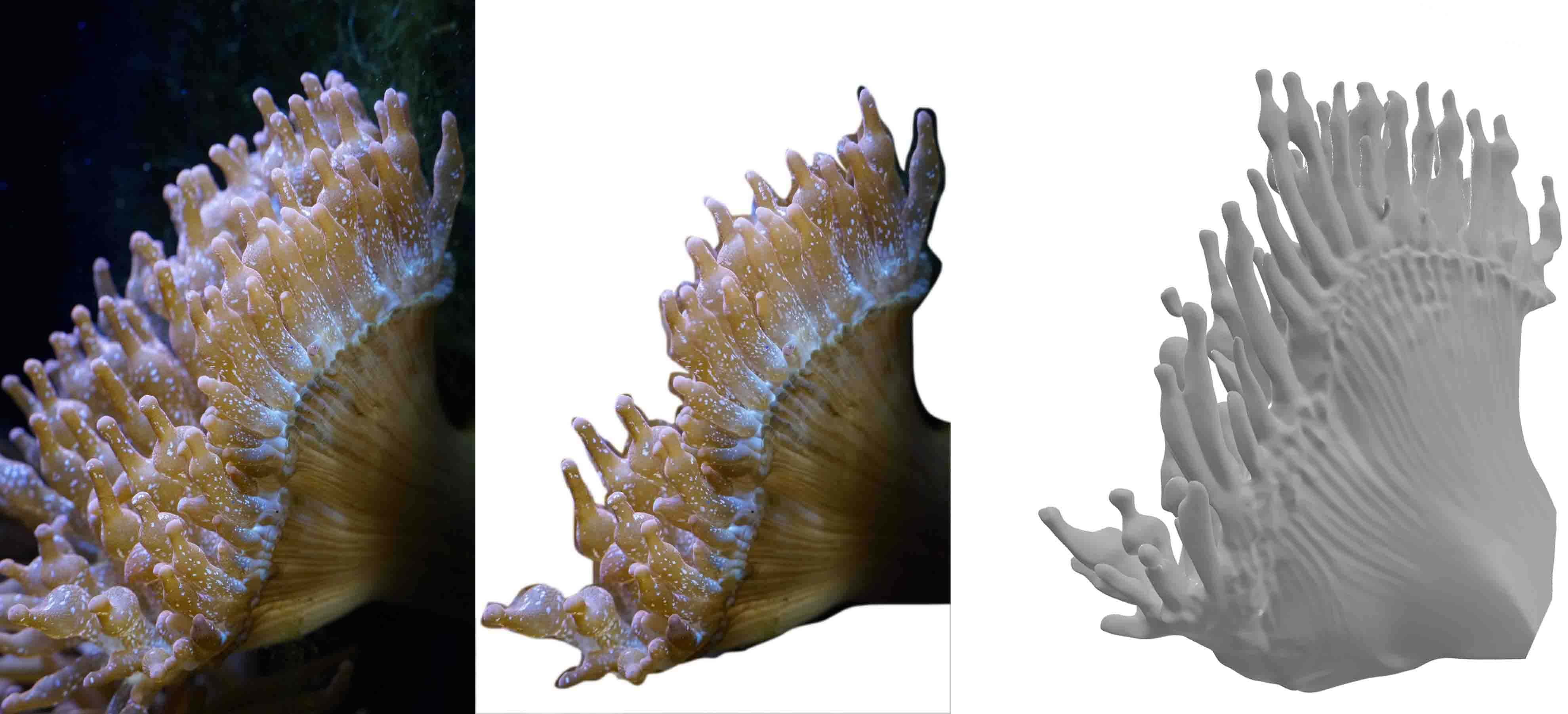 I generated the anemone forms partly from my own reference photos & partly from images that I processed & transformed into 3D models using Studio.Trip.