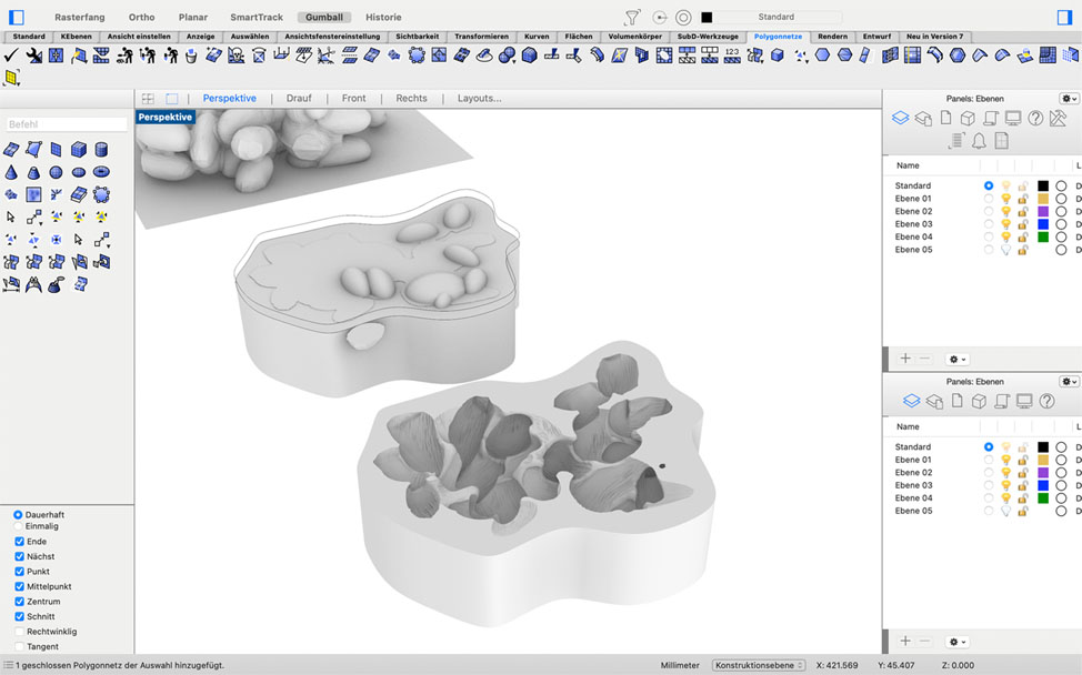 Afterwards, I imported these models into Rhino & created a negative mold, which I then 3D-printed in PLA using Cura as the slicer.