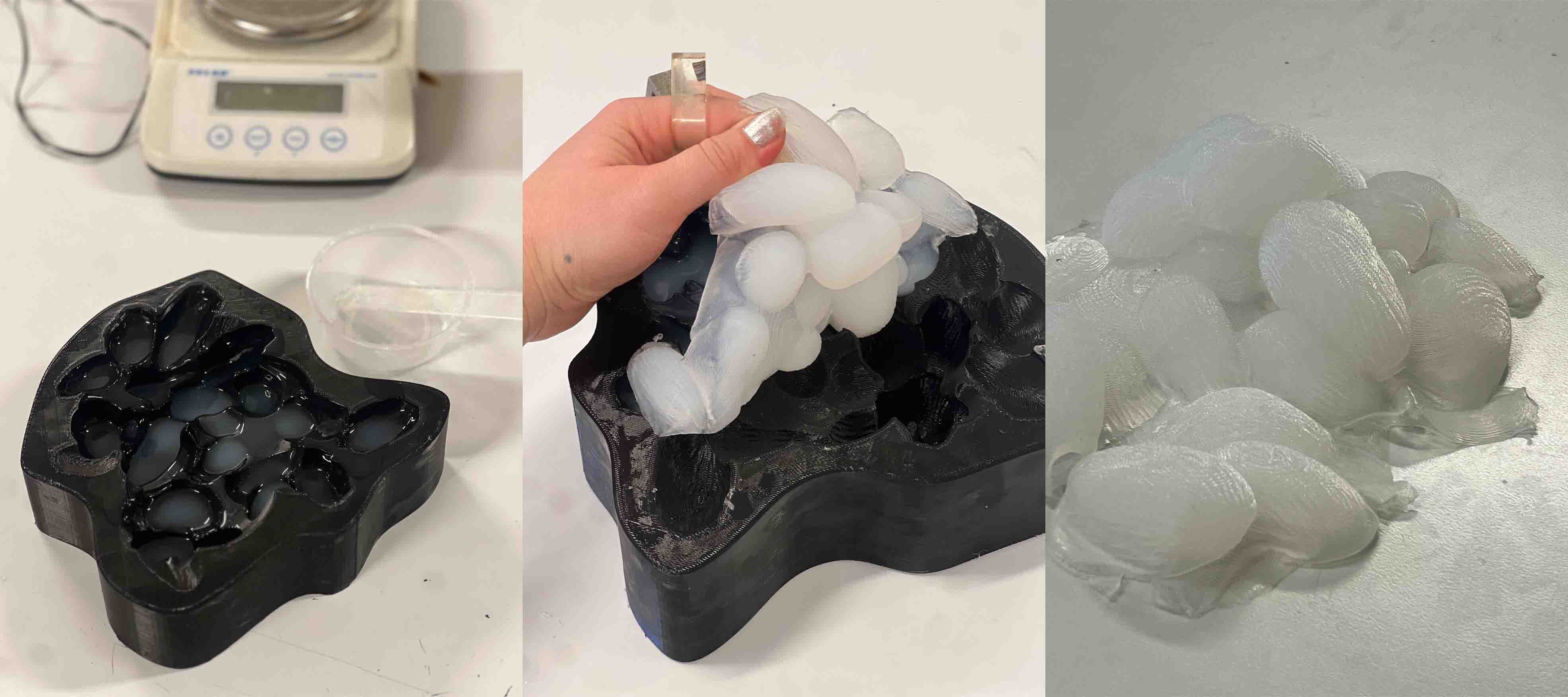 For the material, I initially chose silicone. Its texture & flexibility come very close to the natural qualities of sea anemones. The silicone I’m using is translucent to semi-transparent, which allows each element to be illuminated from within.