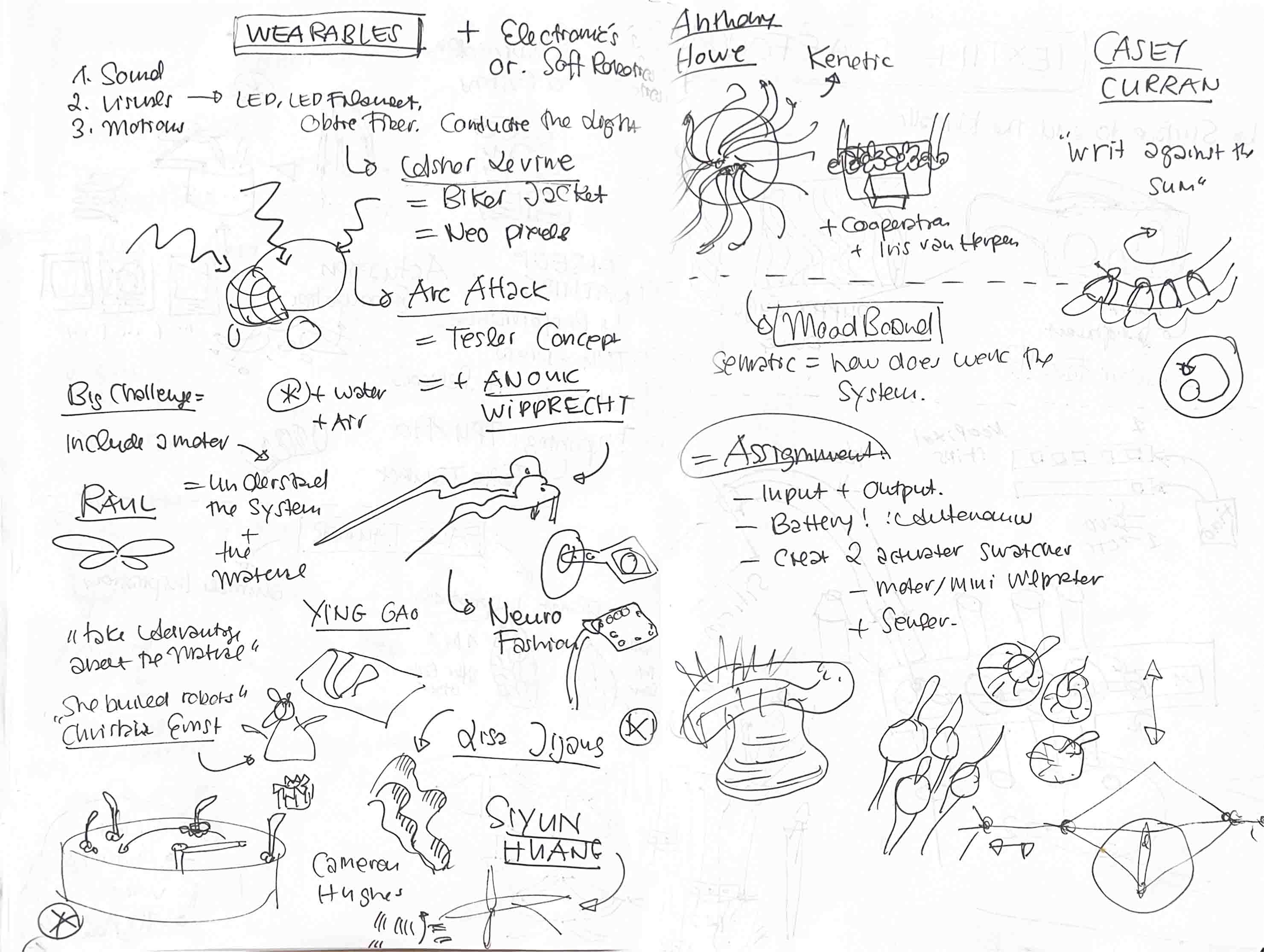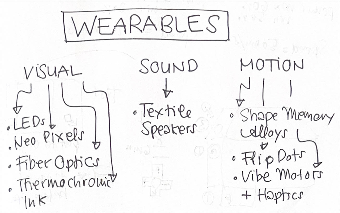 Wearables are interactive objects or garments worn on the body that integrate technology, electronics, and textiles. They respond to the body or the environment and generate feedback through light, movement, heat, sound, or digital communication. Wearables extend the functionality of clothing—ranging from aesthetic effects to close-to-the-body interactions such as haptics or sensory feedback.