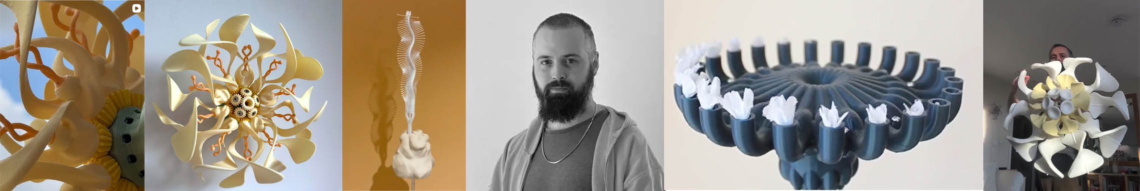 Casey Curran is an artist known for his intricate hand-powered kinetic sculptures that explore the hidden structures of nature & existence. His works animate delicate systems of flora & fauna, inviting viewers to activate & experience them. Combining ornate craftsmanship with precise mechanics, his sculptures reflect themes of pattern, chaos, & emergence.
