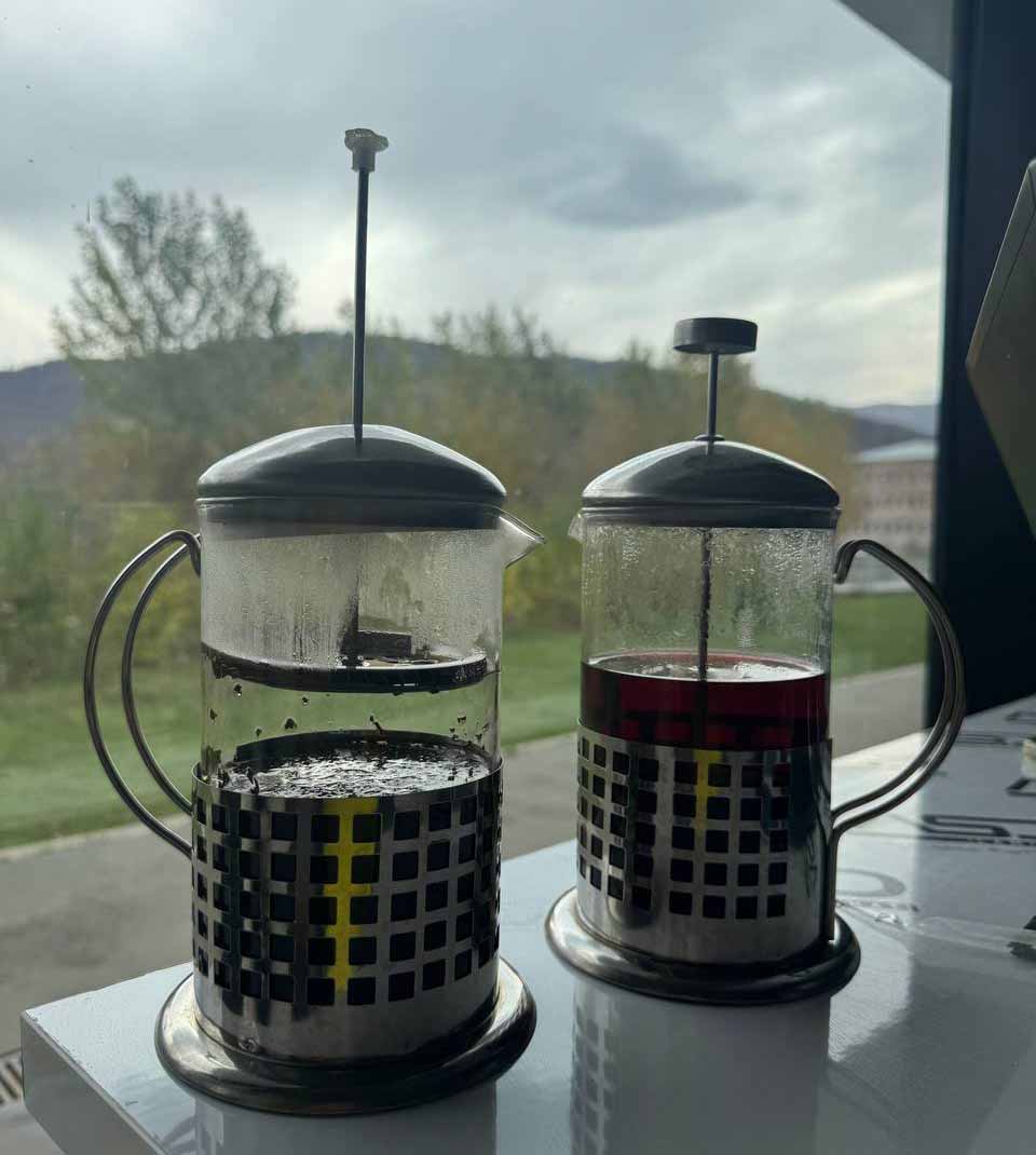 For the first experiment, we made two liquids — one with tea and one with beer.
