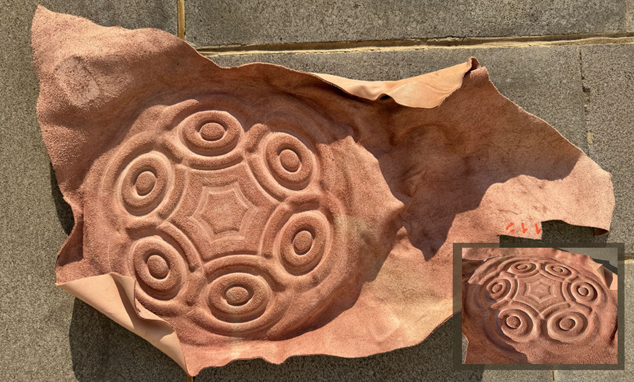 Firstly, I chose the leather. It is natural leather that we colored with natural dye colors. In the biocrhomes week we just put the leather in madder dye and waited for a week. The color became interesting and really juicy.
