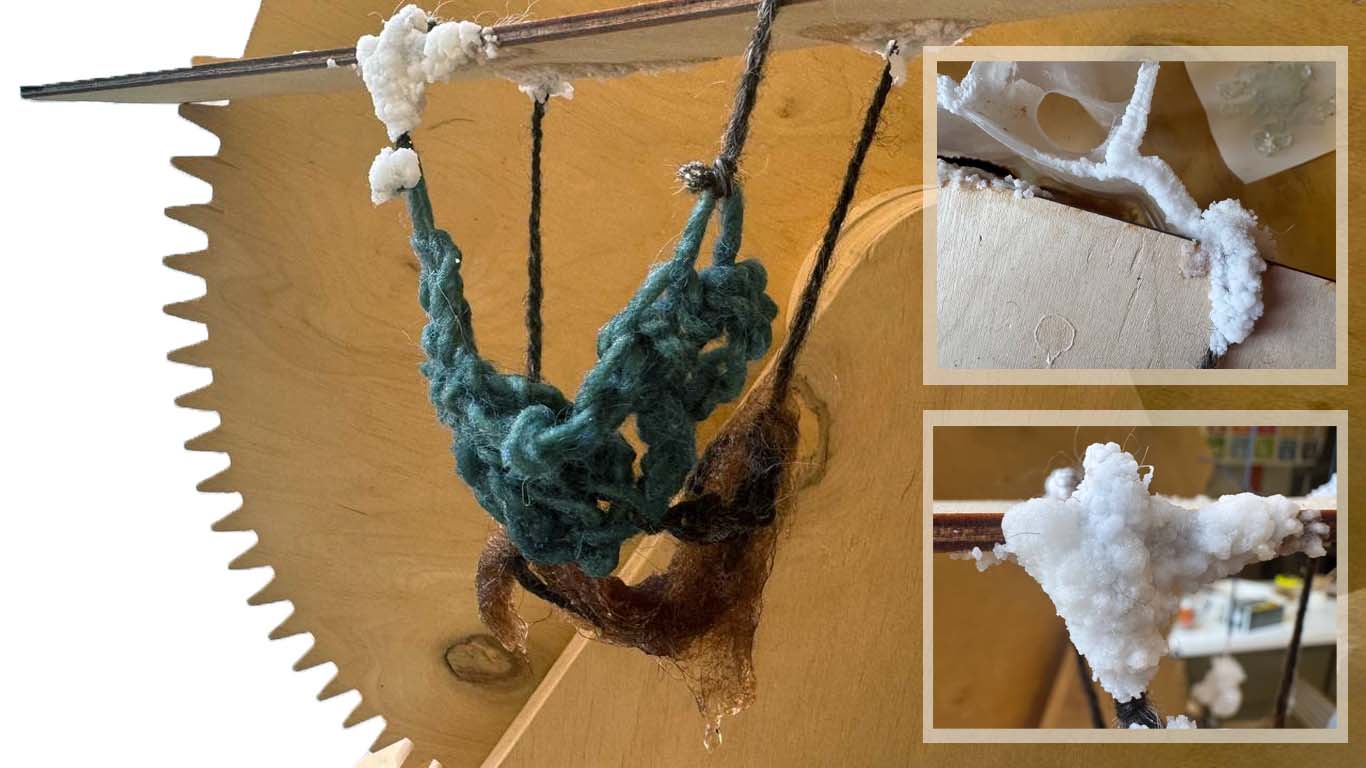 I wanted a material that I could put into a mold and create a form that allows movement. I was trying to develop a biomaterial that would be perfect for this purpose. We had wool left in the lab from Biocrhom week, and I also used the knowledge I gained in the BiofabricationBiofabricationMaterial Creation week.